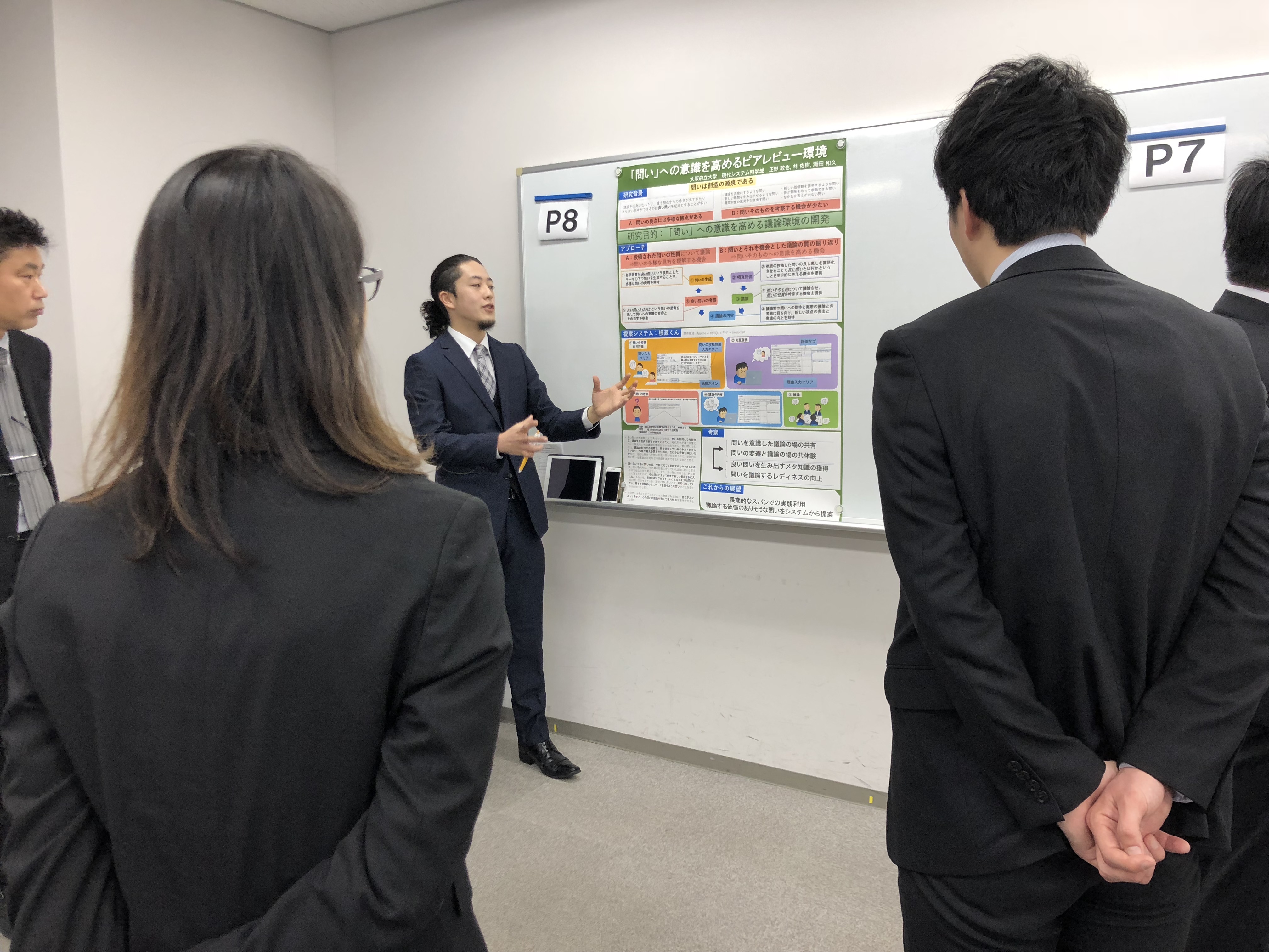 自身の研究テーマである良い問いについて,彼の発表に訪れた方と熱い議論を繰り広げていました.