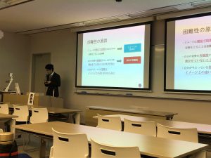 恥ずかしがり屋の彼ですが,発表では堂々と自分の研究について発表していました.