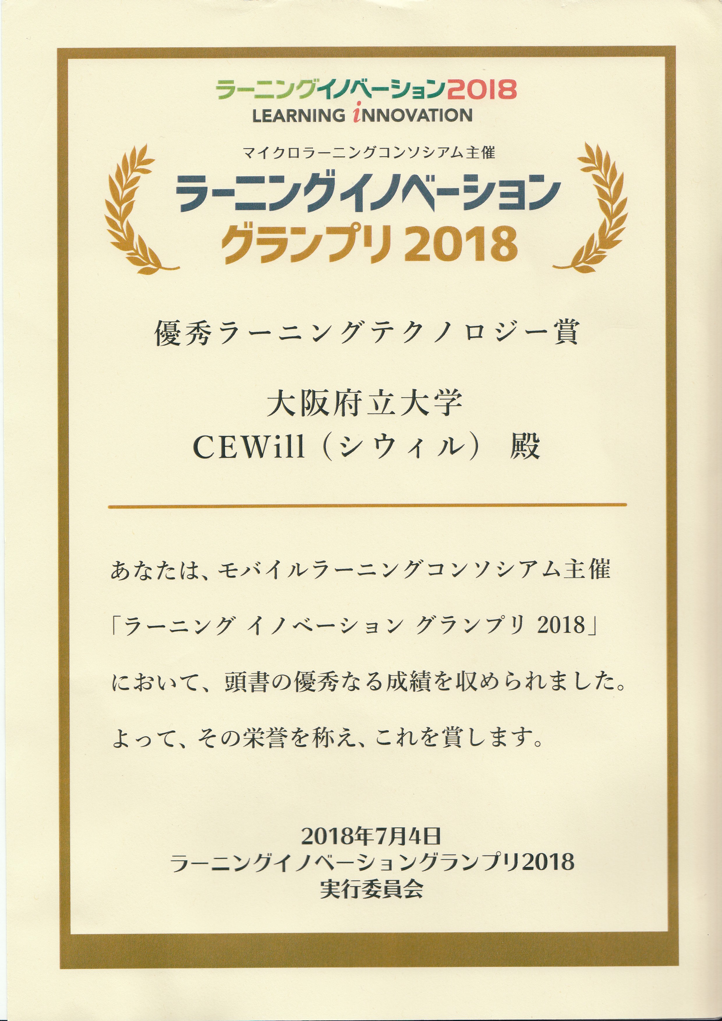 受賞:優秀ラーニングイノベーション賞