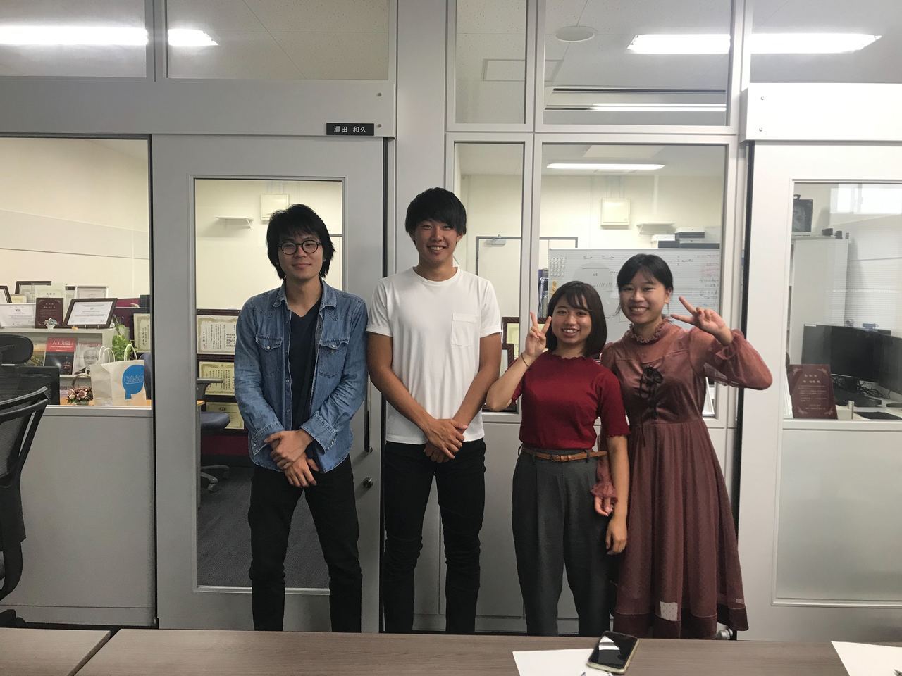 左から松田君,岸本君,田中さん,丁さんです.