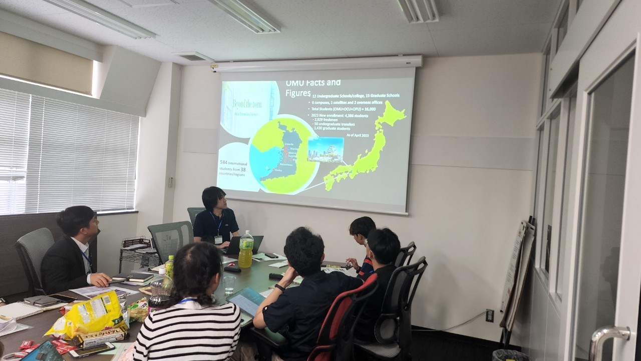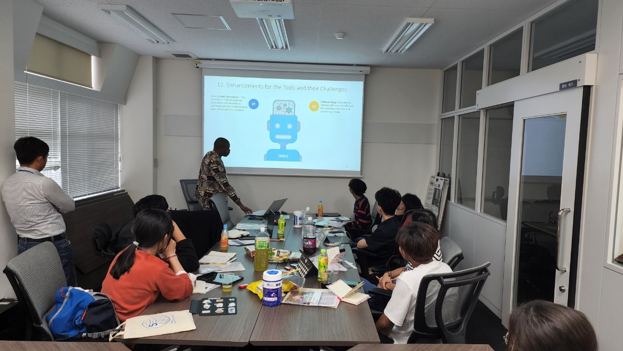 そこでは,林先生から,行程の説明や研究室の紹介,大阪公立大学の紹介があった後,Hassaneのプレゼンテーションがありました