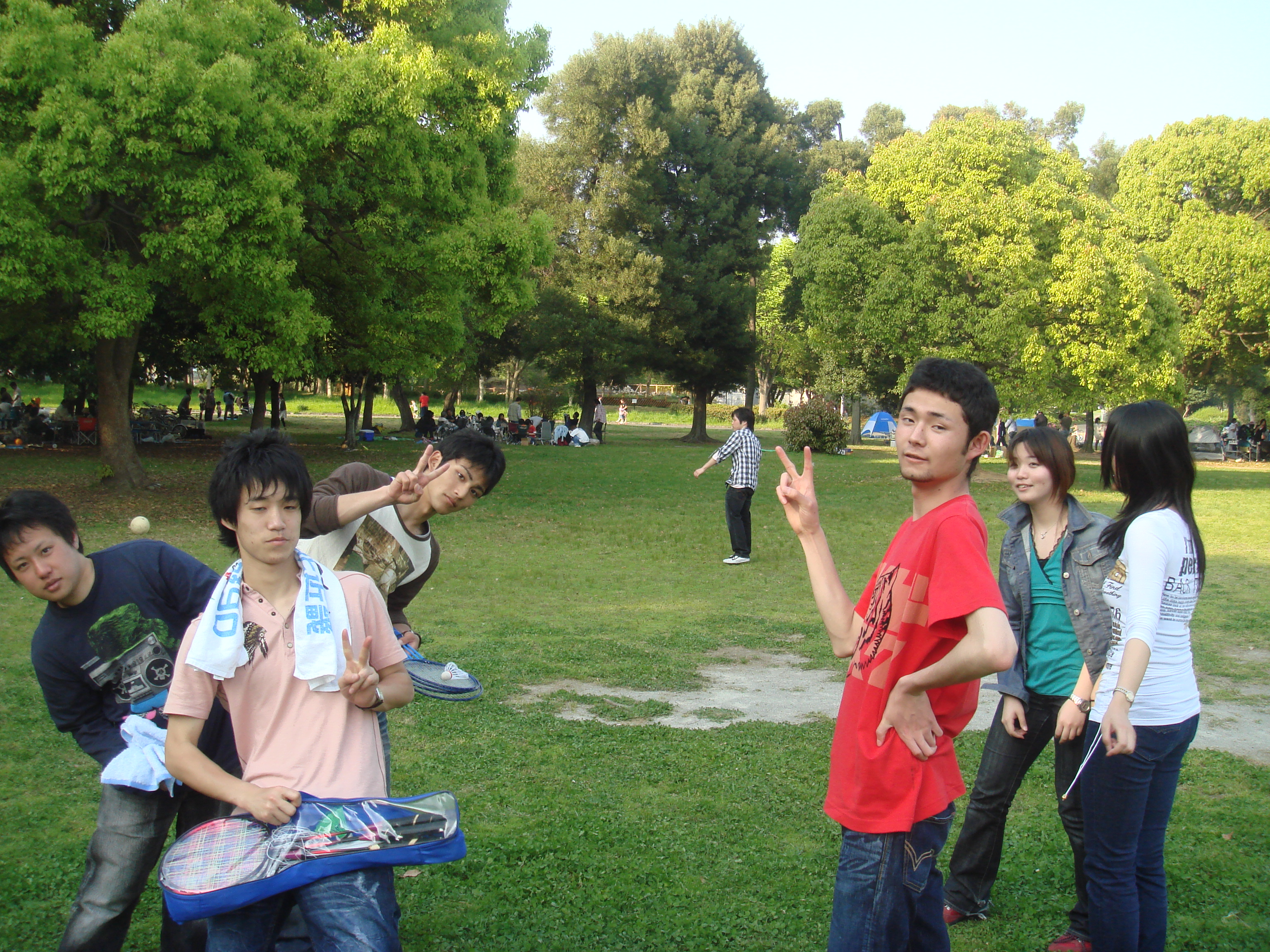 今日はBBQです!! 天気もよくて、BBQ日和です♪ 1回生がたくさん参加してくれました!! 元気いっぱいです☆ M2の先輩方もたくさん参加してくださいました☆ ありがとうございます♪ 今回は4回生が一番参加率がよかったです。 みんな友達思いやなぁ… と思ったけど、実はあんまり関係なかったり(笑) 丸本さんと丸尾さんも参加してくださいました☆ 久しぶりにお話できて嬉しかったです!! また参加してくださいねー!! 1回生、4回生、M1です! 今回、お肉が大量だったんですが、みんなたくさん食べれたかなー?? こちらは3回生です! 不意打ちで撮られたっぽいですね。 確かM下さんの仕業だったような…(笑) 岡澤さんも参加してくださいました☆ 岡澤さんの子供めちゃくちゃ可愛いです!! かなり癒されましたー☆ 食後はみんなで楽しく運動♪ サッカーしたり、バドミントンしたり… 見つめ合う2人… さすがうちのエース!! ここでも本領発揮です。 相手は誰かって? 次の写真へGO!! 誰かわかったかな??(笑) なんで女装してたんだろ?? どっから持ってきたんだ? 瀬田研恒例のいい顔対決!! 今回の勝者はどちら…?? 近くにいた子どもたちとかごめかごめ♪ それぞれみんな自由に遊んでます☆ ネットをもってきてくれた子がいたので、本格的にバドが楽しめました☆ 林先生ハーレム!! 超貴重な写真ですね!! その後の打ち上げです☆ みんなテンション高ー!! あれ、ごとうくんメガネ割れてるー!! 松本さんはBBQから、松尾さんは打ち上げから参加してくださいました!! 貴重なお話がたくさん聞けました!! 今日はどうもありがとうございましたー!! 肉の日BBQ