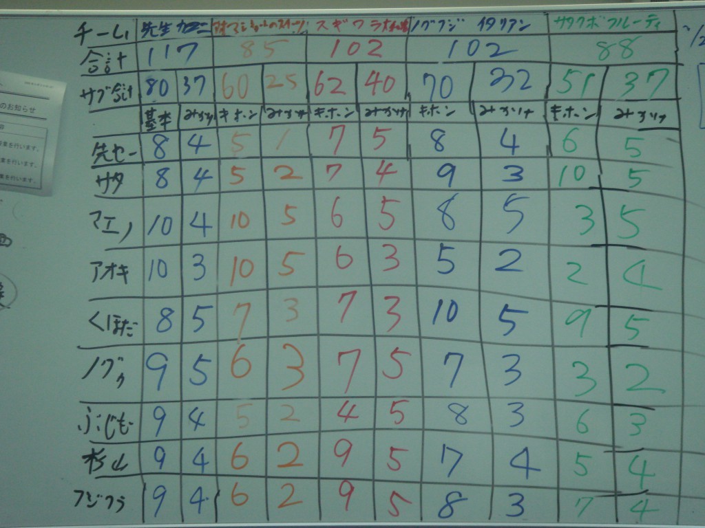 今日はKESお疲れ様パーティです。 同時に瀬田研初の試みの料理バトル。 みんなスタートからやる気が違います。 今回のお題は 「フランスパンに何をのっけたらおいしいのか」 です。 みんないろんな材料を買ってきてますね~ 瀬田研料理人、のぐーさんも本気です!! こちらは先生お手製の豚の角煮です。 朝から作ってました。 レベルが違います。 今日はハットの日ということもあって、 一応ピザもあります。 KESお疲れ様会なのになぜか料理バトルの方がメインに… テーマは「大和魂」。 よーく見てみると、アレに見えてきませんか? こちらはさたくぼコンビによる一品。 デザートを意識した仕上がりになっております。 さてさて結果はいかに… あ、ちなみに最下位には罰ゲームありです。 餌食になるのは一体誰?? 今回は先生に軍配!! 罰ゲームは青・前コンビです。 この2つのフランスパンのうち1つは激辛です。 さあどっちが引き当てるのか… 青木くんどんまい!! KESお疲れ様会&第1回料理バトル