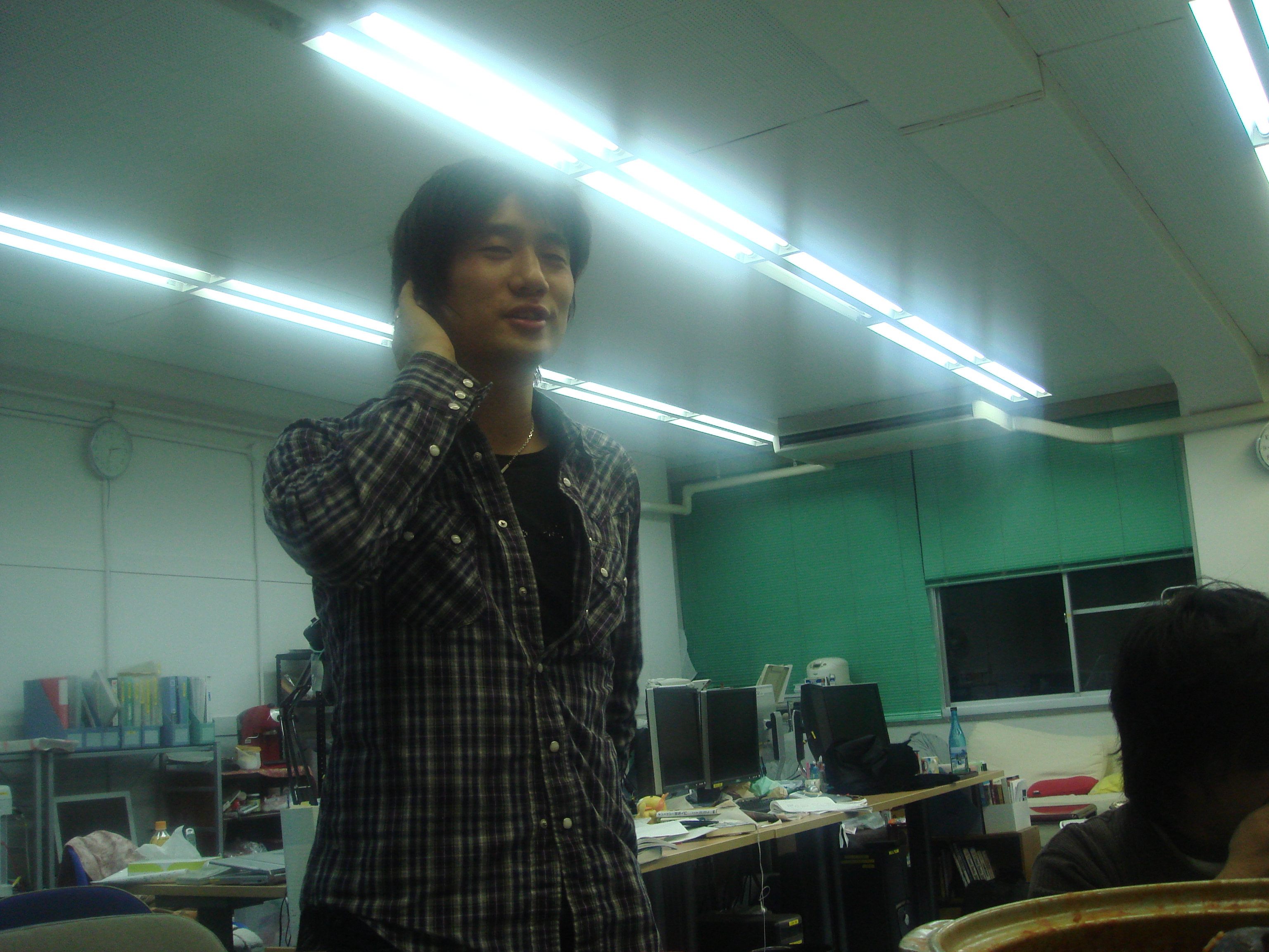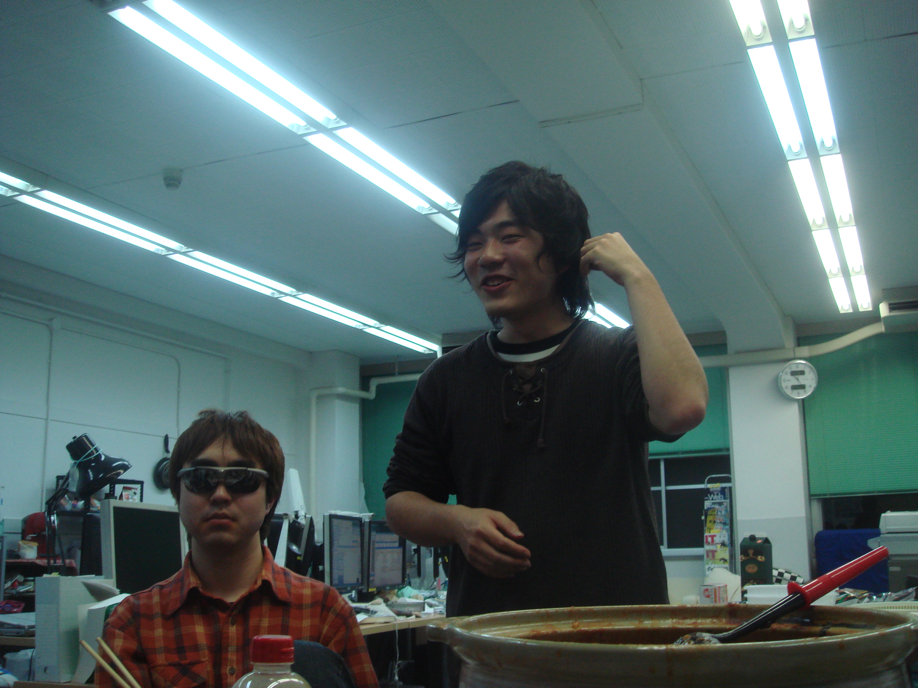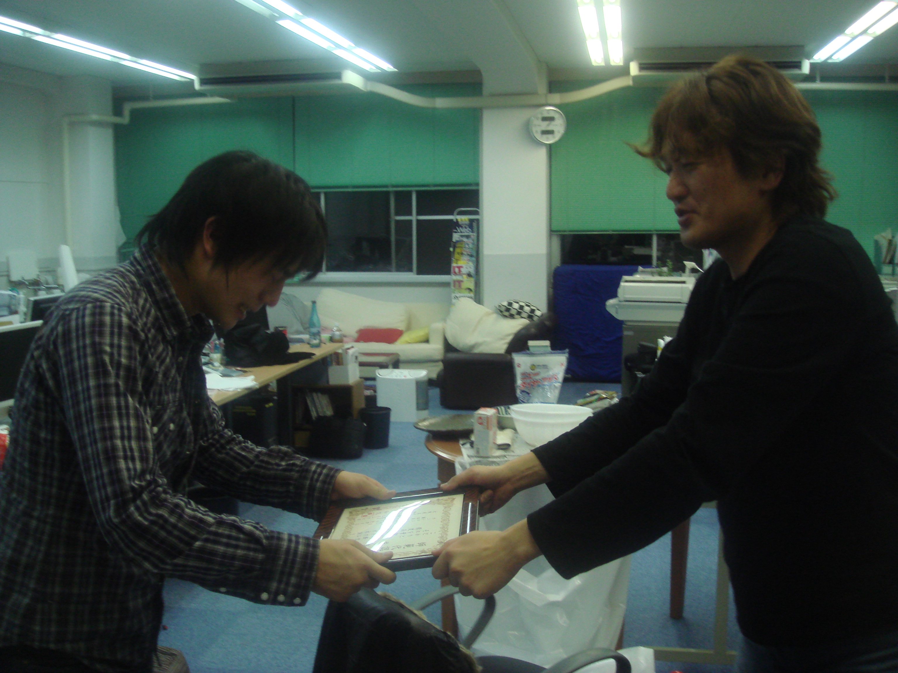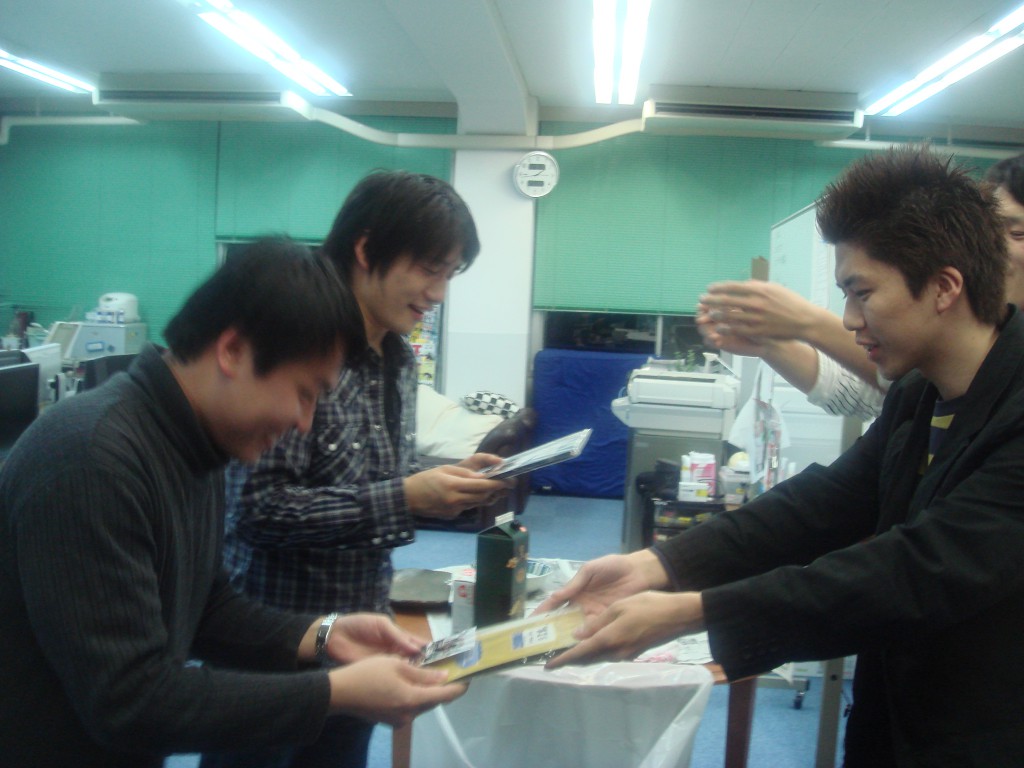 本日は追いコンです。 のぐぅ~さんと先生が腕によりをかけて作ってます! 何やら鍋のようですが・・・ そうして出来た合作がこれ! てっちゃん鍋です。 うまそ~!! 皆で記念に一枚☆ミ M2のツーショットです。 かんぱ-い☆ いつもの二人です。 瀬田研での最後の勝負は引き分けです(笑) のぐぅ~さんから卒業生に贈る言葉です。 言いたい事がたくさんあって全員話し終えるのに かなり時間がかかりました! 師範代認定書の授与です☆ 佐竹さん、お世話になりました! 続いてQuangさんです。 これからもグローバルにがんばってください☆ 3回生から卒業生にプレゼントです☆ その中身はいったい・・・ プレゼントは瀬田研写真集です☆ 中には、二人のたどった3年分の写真!! 実は、最初に撮った皆での一枚もすぐに現像して プレゼントして早速入れてもらいました☆ もらった写真集にご満悦な佐竹さんです☆ 僕らのこと忘れないでください!(笑) 卒業生からのありがたいお言葉です☆ 今までお疲れさまでした!! 追い出しコンパ