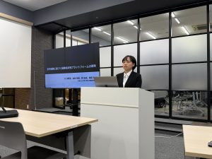 最初に川さんが「思考経験に基づく経験知共有プラットフォームの開発」という題目で発表しました.