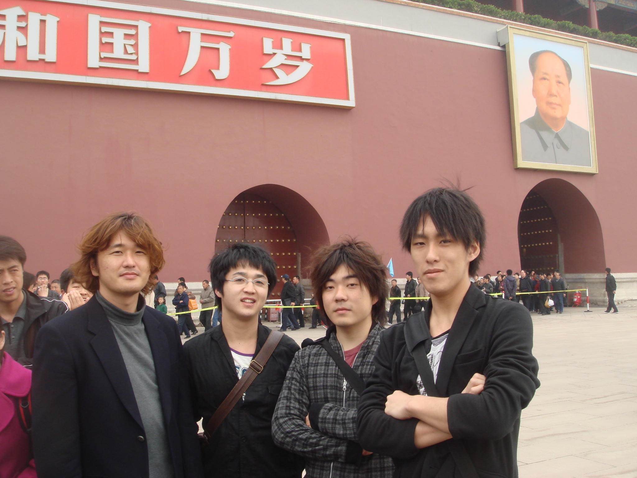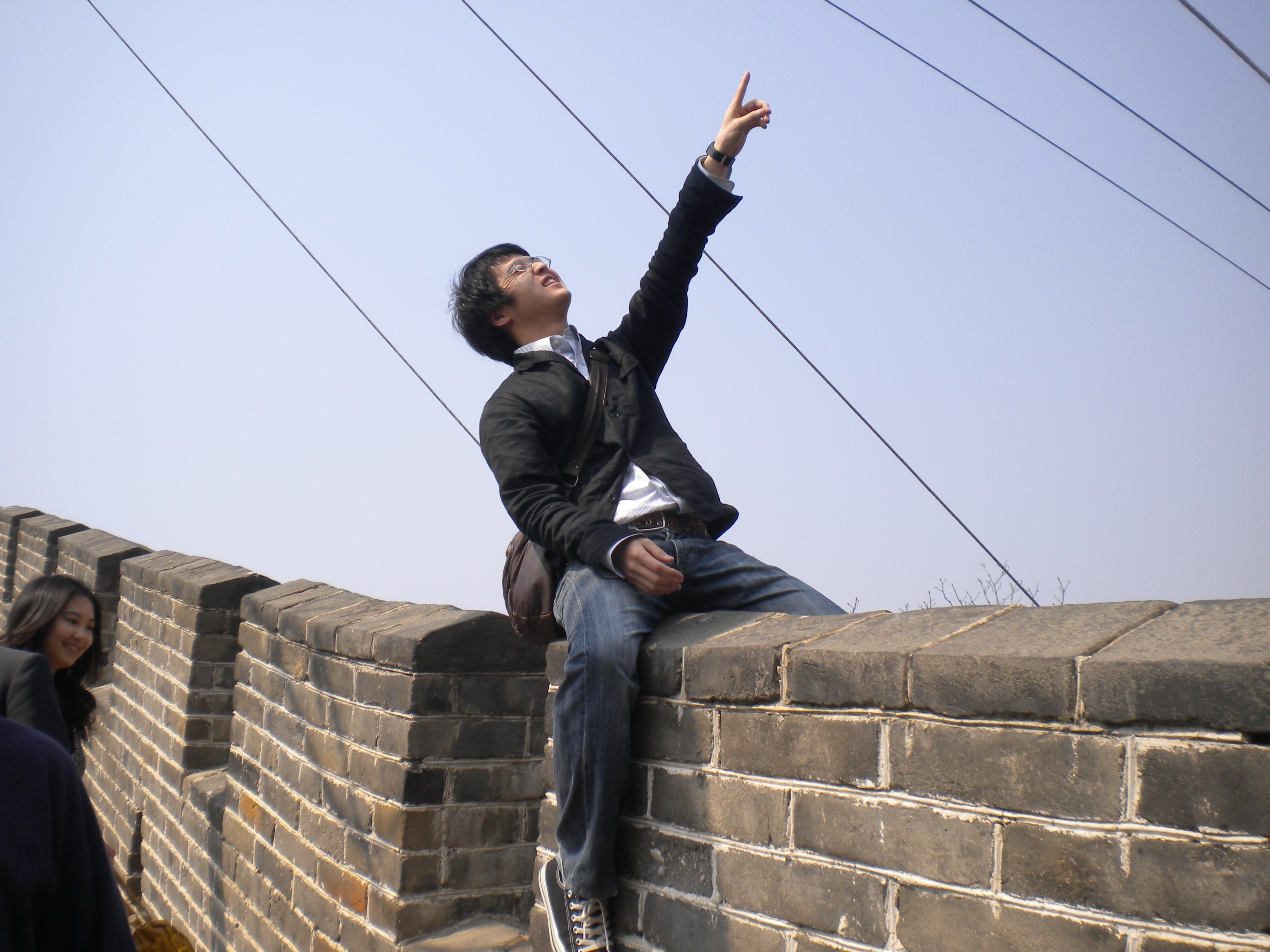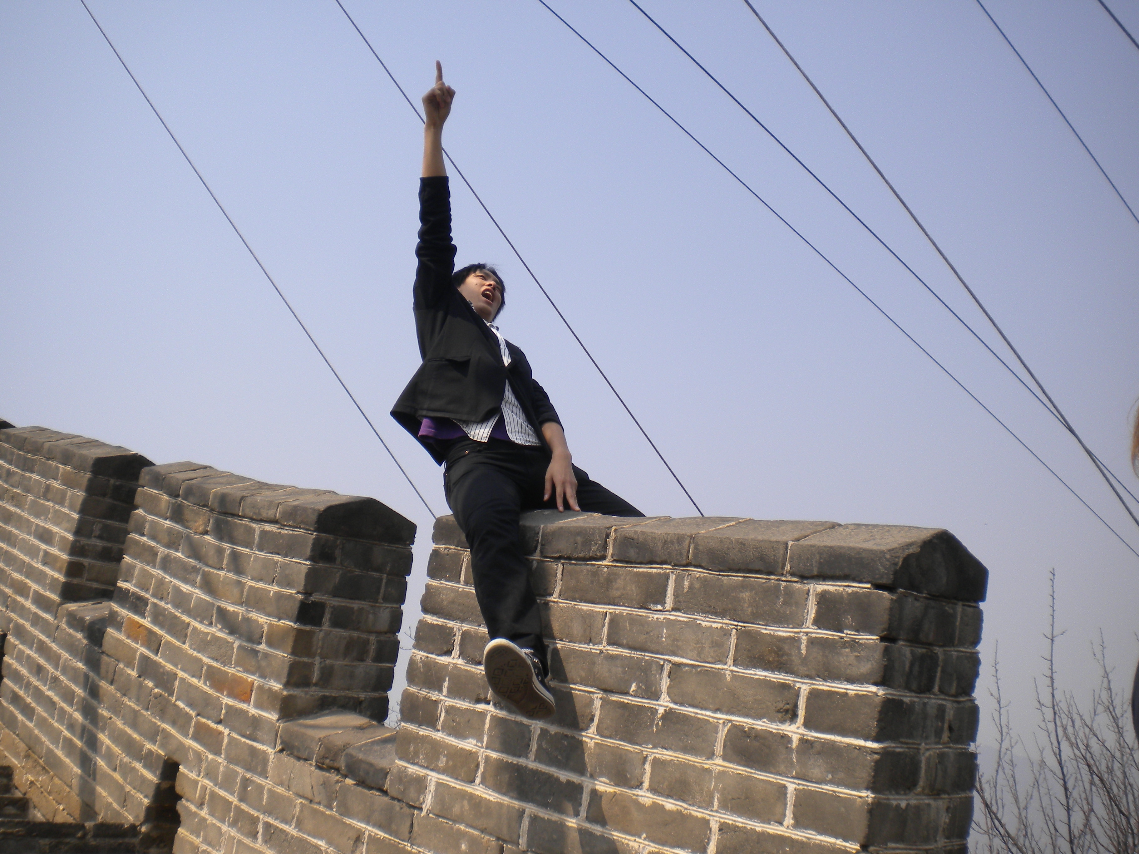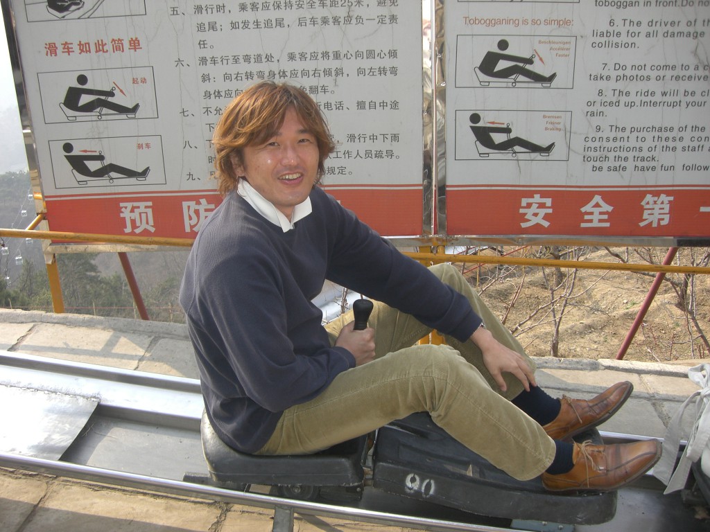 万里の長城から降りるときにルージュみたいなのに乗りました!!先生のわくわくした顔!