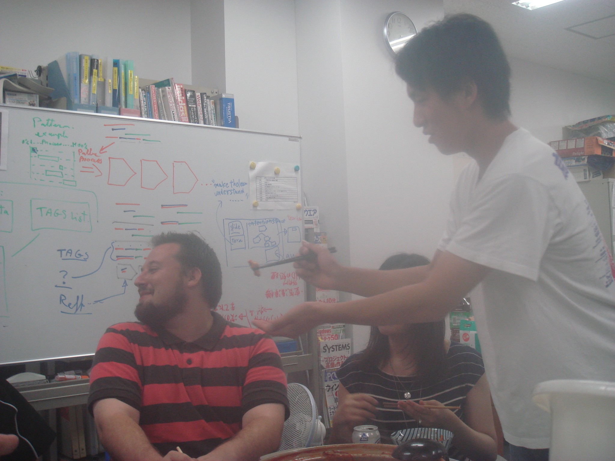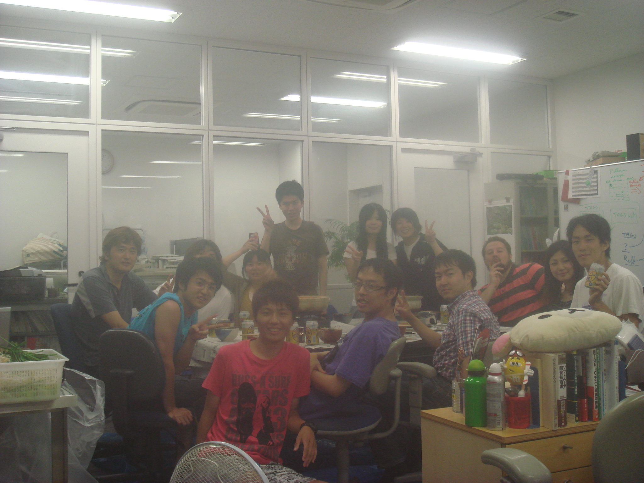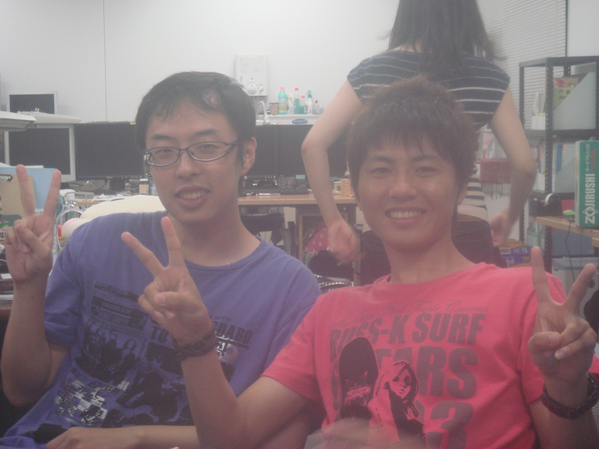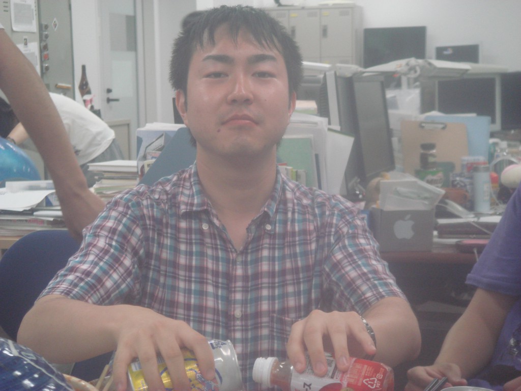 今日は原さんの歓迎会でーす☆ かんぱーい♪ 先生お手製のもつ鍋です☆ おいしそーw 今日の主役の原さんでーす! 早速日本酒持ってます☆ 原「今日は暴れるぞー」 瀬田研美女コンビ☆ ほほえましい(´ω`*) のぐぅさんと先生です! もつ鍋待ち中です♪ 藤原の変顔♪ 隣から出てる手は誰の?? ノリがセドにもつをあーん♪ でも、セドはもつが嫌いみたいで 最後まで全然食べませんでした↓↓ 中国人留学生コンビ♪ 日本語の勉強頑張ってねーw 原さんとくらっちのB4コンビ♪ これからの瀬田研を支える二人です! くぼたさんのいつもの。 ビールとトマトで自家製レッドアイです♪ 私にも飲ませてください!! 青木さんの・・・あばれ太鼓。(Tシャツ) 飲み会の意気込みをTシャツで体現してます♪ しかし、その結果は・・・ 原さん歓迎会