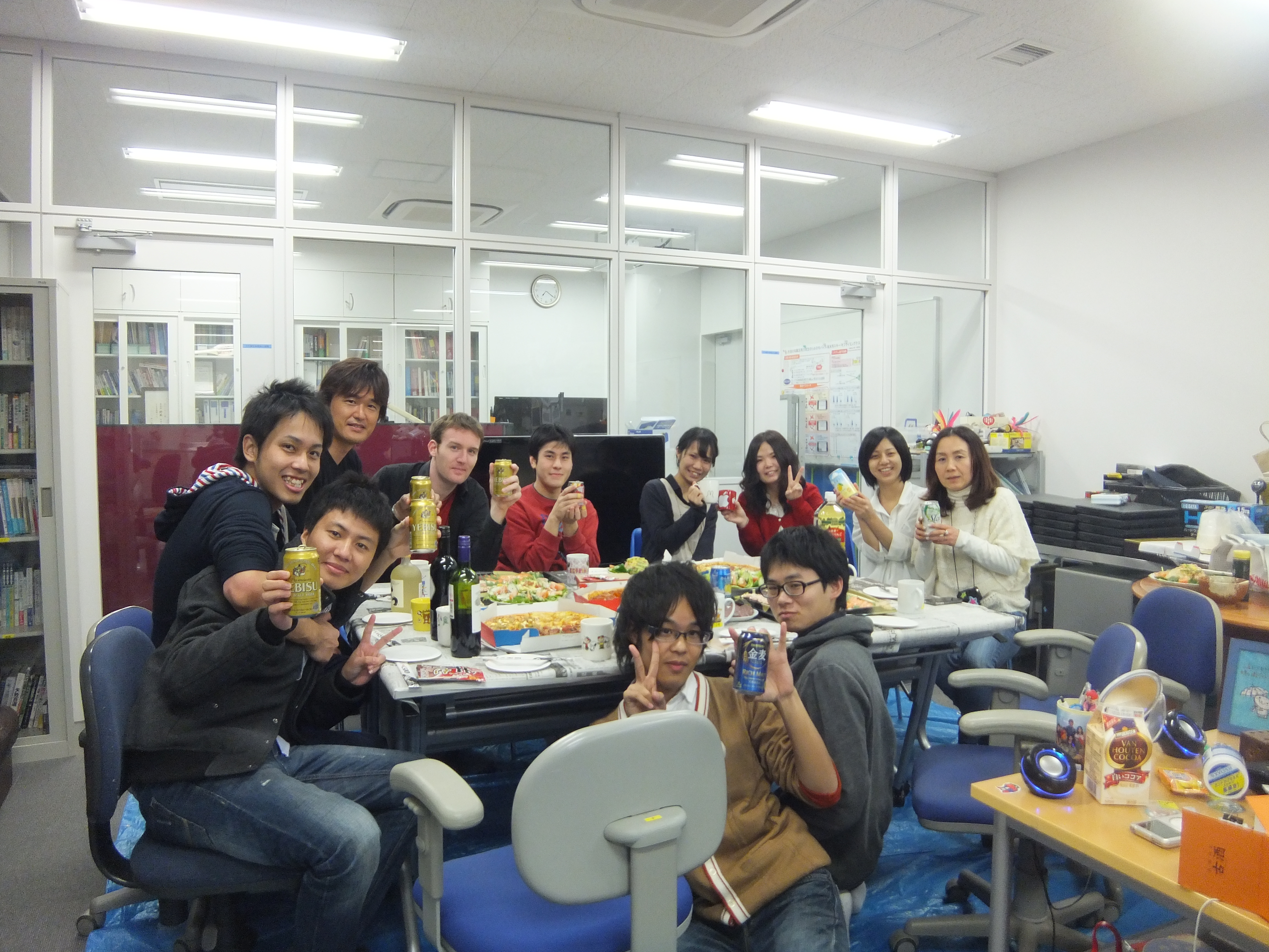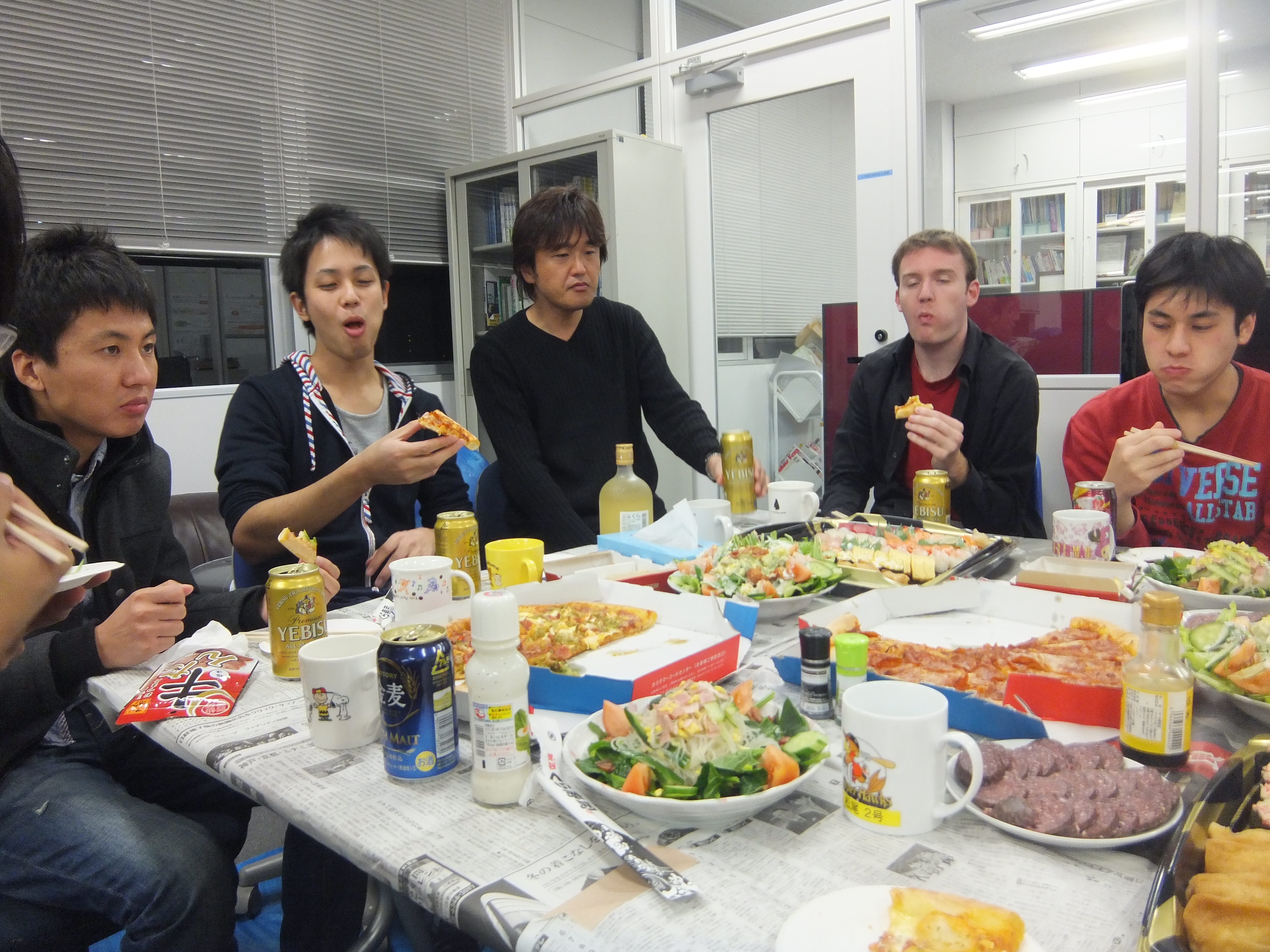 今日は三回生の歓迎会です!本日のメニューはピザと……;