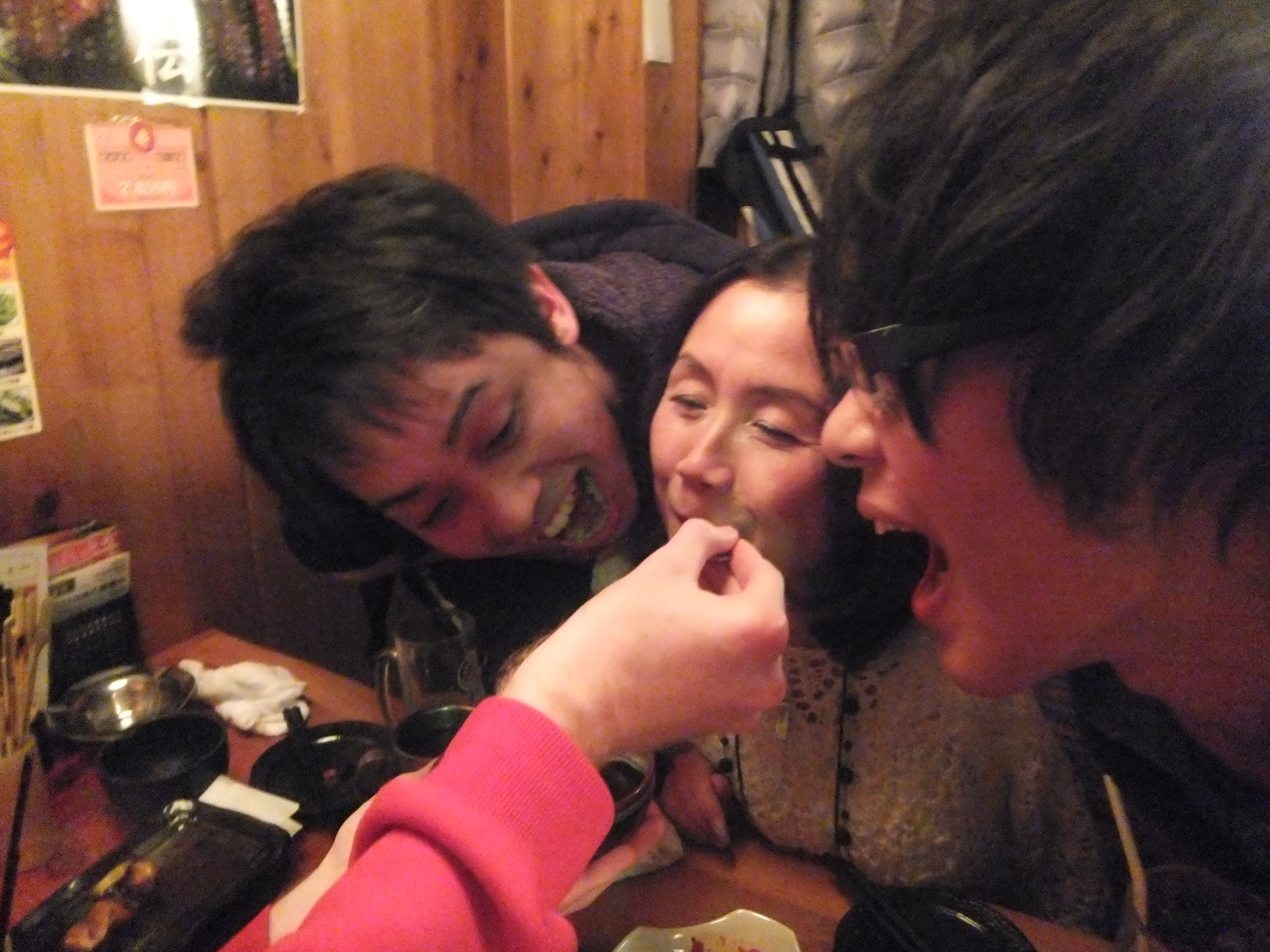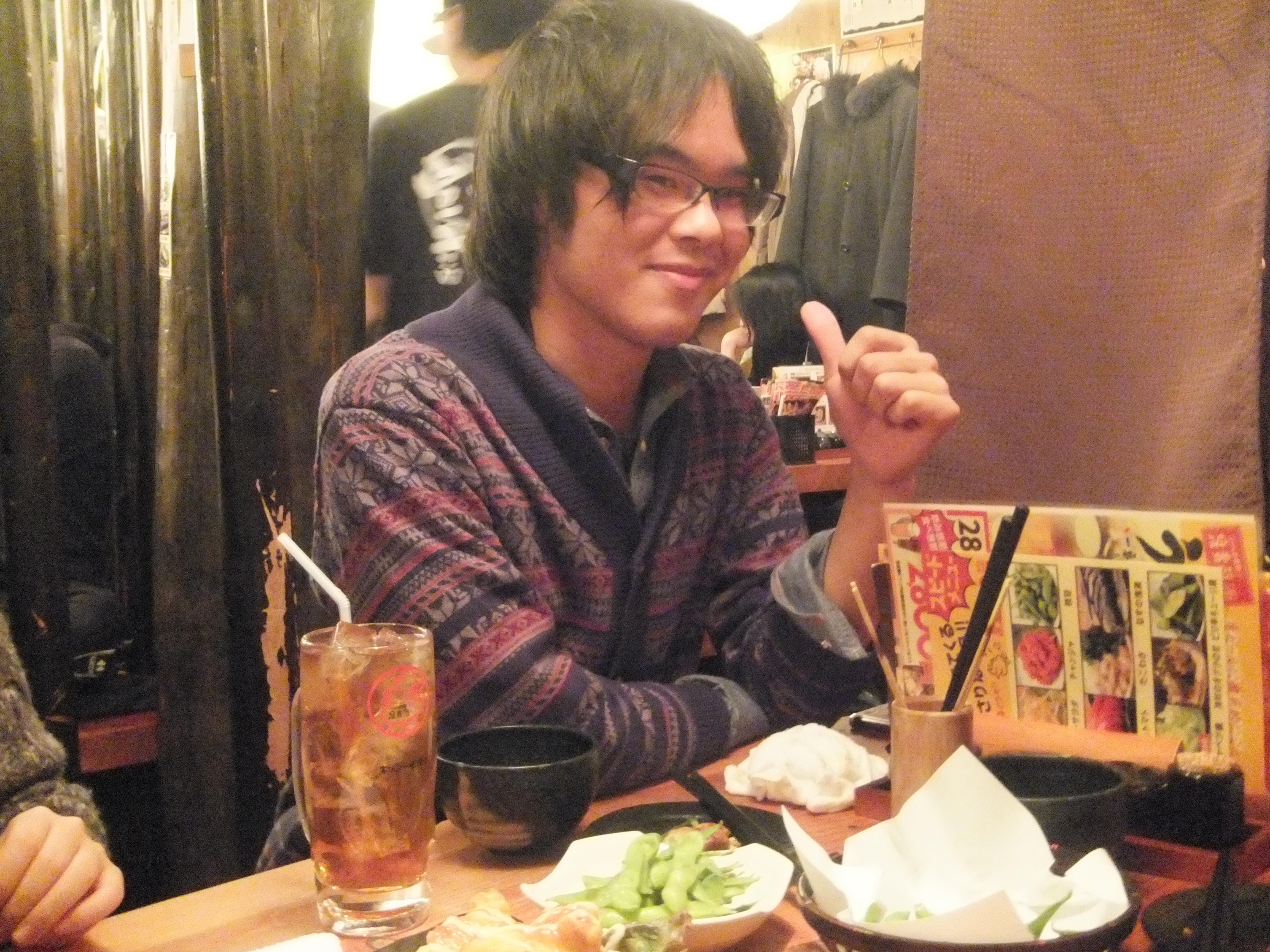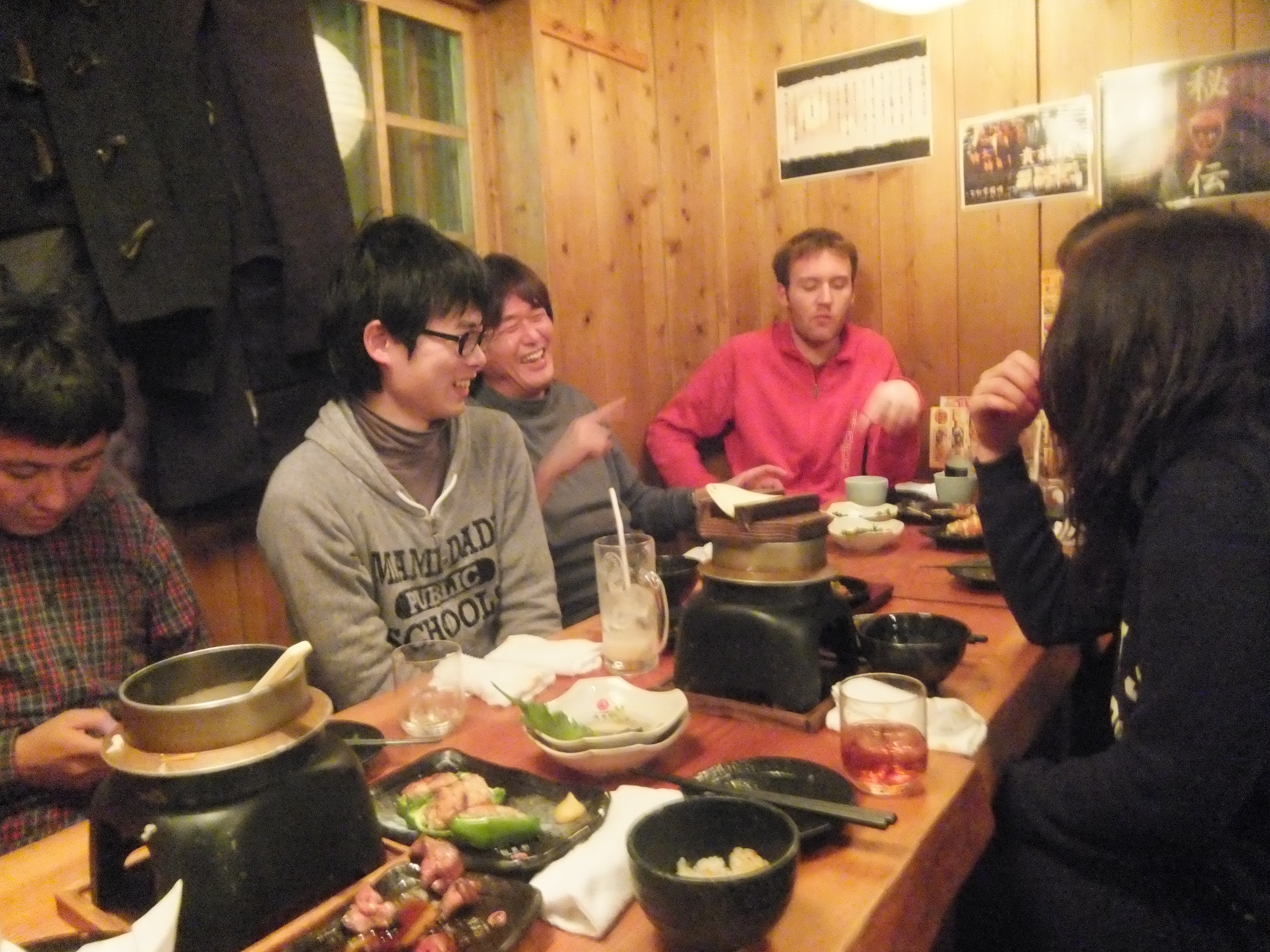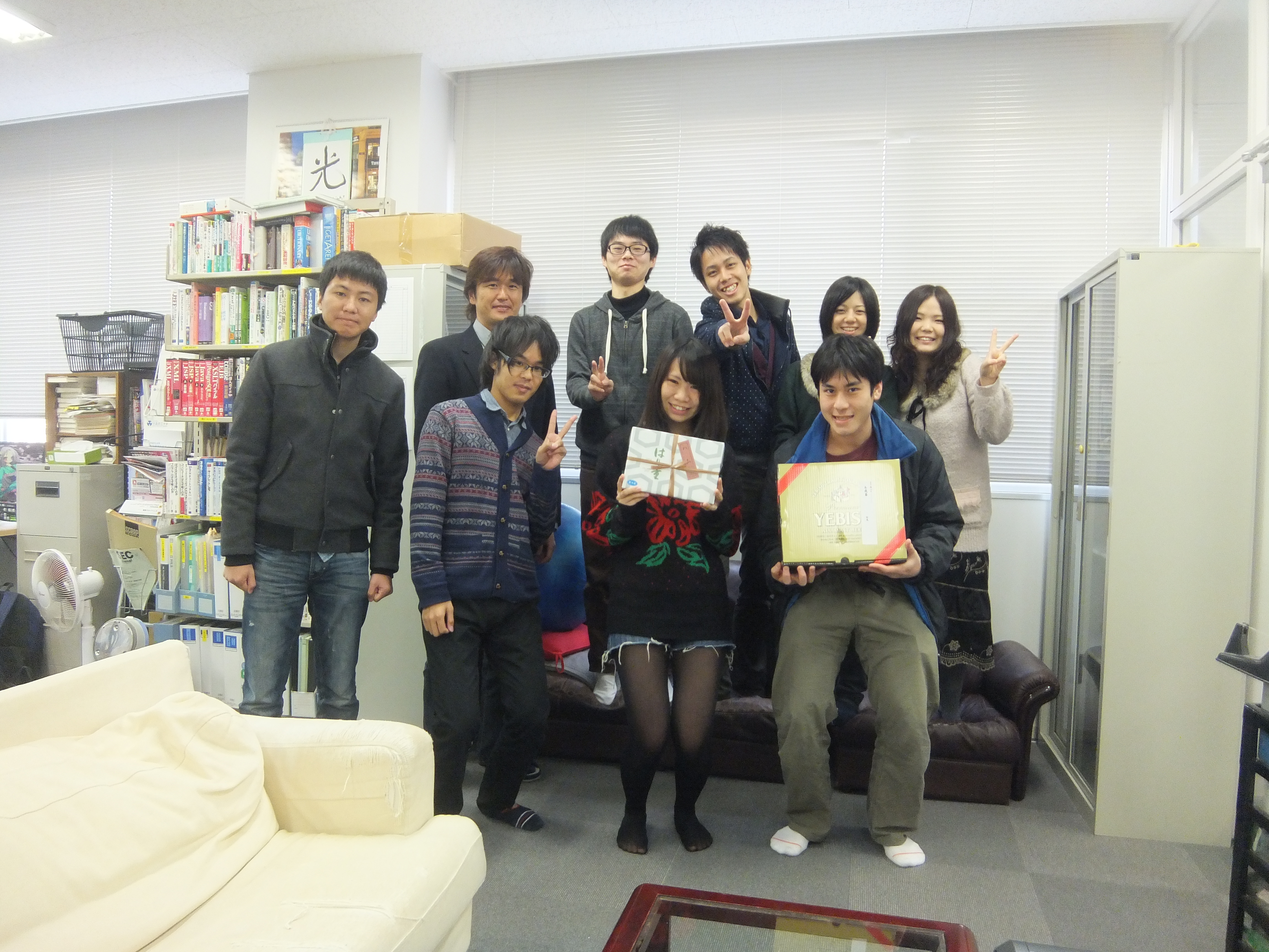 OBの松尾さんからビールを、西村さんから焼き豚をお歳暮でいただきました!!ありがとうございました! 杉山さんからお歳暮にハムを頂きました! ありがとうございます! 西村さんや松尾さんから頂いたものもあわせて新年にいただこうと思います。 今日は瀬田研究室の忘年会です! 2012年お疲れ様でした!! 三回生の野島君も参加してくれました! 楽しんでくれているかな? 楽しそうに笑っている瀬田先生。どんな話をしているのでしょう? どや顔の岸本。完全に酔っぱらってます。 女子三名で一枚。華があります! ジョンと島添さんで一枚。 この後ジョンが今年最後の争いを巻き起こす! ジョンからプリンを「あーん」してもらえるのは岸本か東さんか!? この後島添さんが候補に加わりましたが、勝ち取ったのは東さんでした! さすがです…… 今年一年楽しかった!また来年もよろしくお願いします! 忘年会
