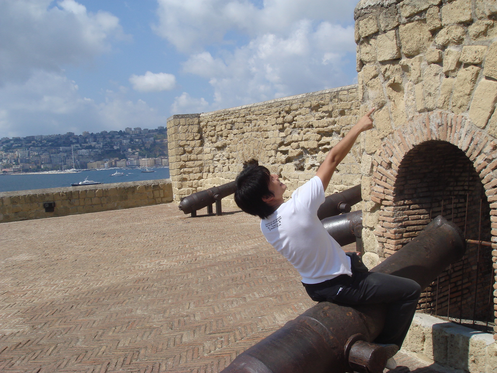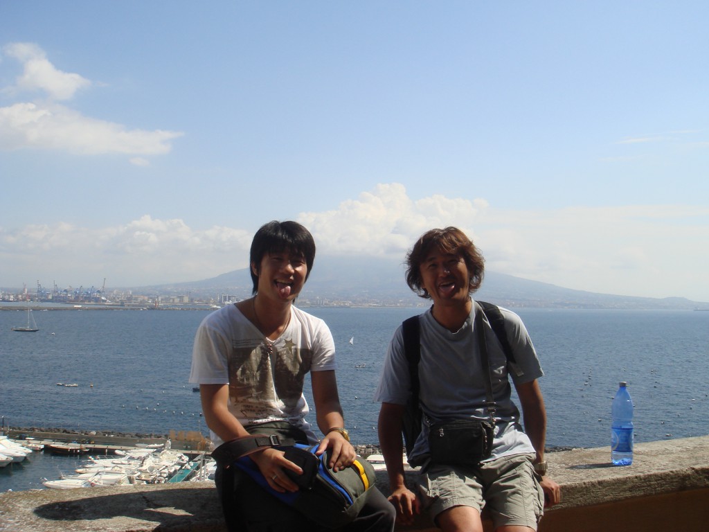 イタリア初日!! ナポリでの町並みです。 先生もテンションあがってパツキンギャルにみとれてます。 ナポリの町並み2 めっちゃイタリアって感じがしました。 はい、調子乗ってます これなんやったんやろ??? なんかわからんけどめっちゃ広い広場がありました。 先生もはしゃぎだしてしまう始末。。。 ナポリの卵城から なぜかしらないけどイタリア人に写真頼んだらベロ出してっていわれました。 イタリアのはやり?? ちなみに後ろに見えるのは火山らしいです。 はなてーーーー!! これがナポリの卵城の外観 海に囲まれてるし城壁絶壁やし、もう無敵!!って感じです! いやいや、勉強中ですって!! プレゼンの台詞書いてある紙持ってるでしょ! 日光浴なんかしてないですって!! 日光浴じゃなかった、しっかり練習した甲斐あってプレゼンはうまくいったと思います。 Q&Aについては。。。ノーコメントで。 帰りにフランクフルト空港にてドイツビアー ぷはーーーーっ KES 2007