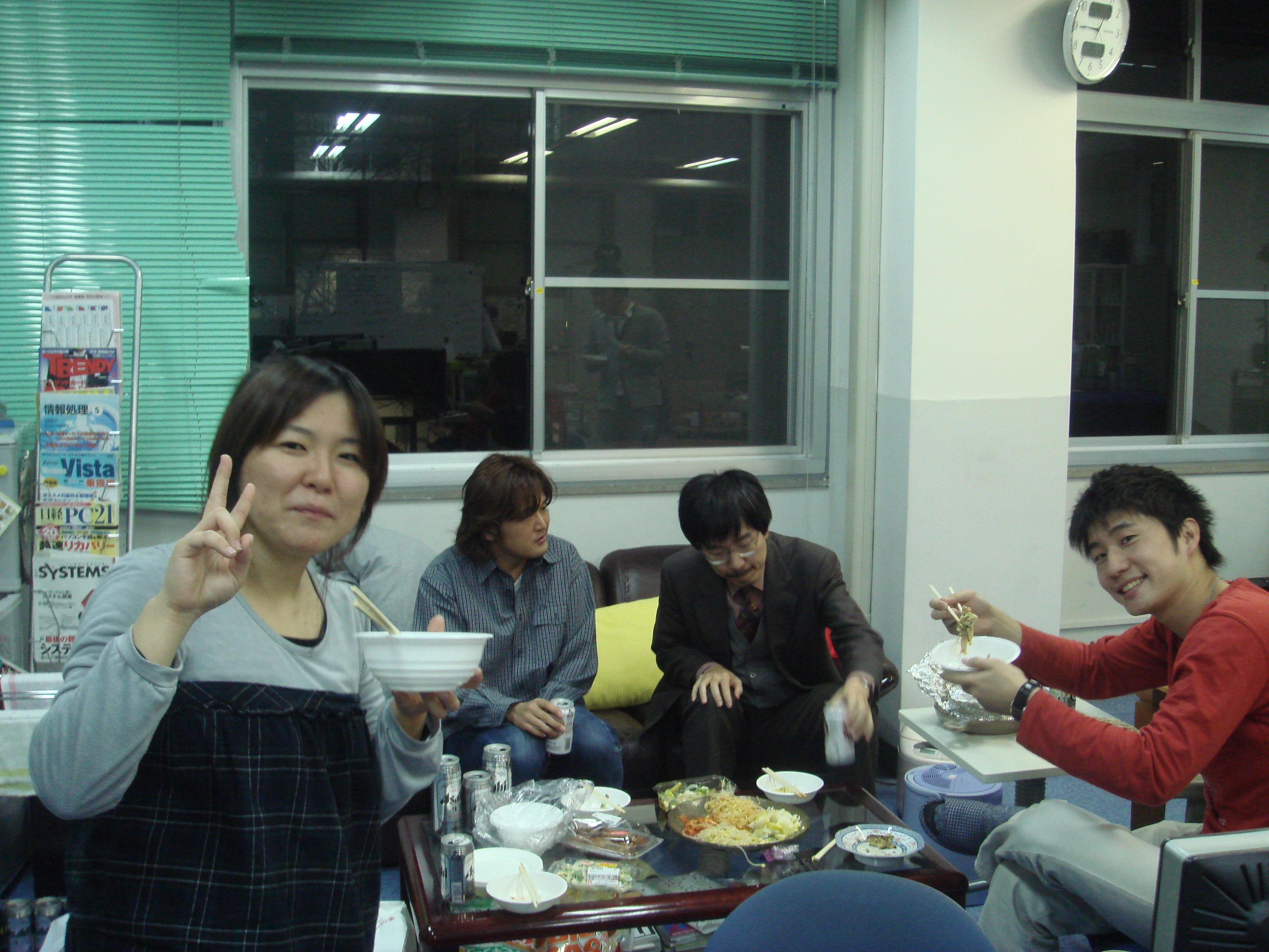 西村さんプレゼンツ飲み会♪ 本日は西村さんが晩御飯を作ってくれます☆ 一足お先に乾杯してます(笑) これぞ男の料理!! こちらが完成した料理たちです☆ これ結構好きです☆ ご飯がほしい!! これ、一番のヒットでした!! みんな大満足のようです♪ 先生たちもなにやら話が進んでいるようですね。 西村さんプレゼンツ飲み会♪