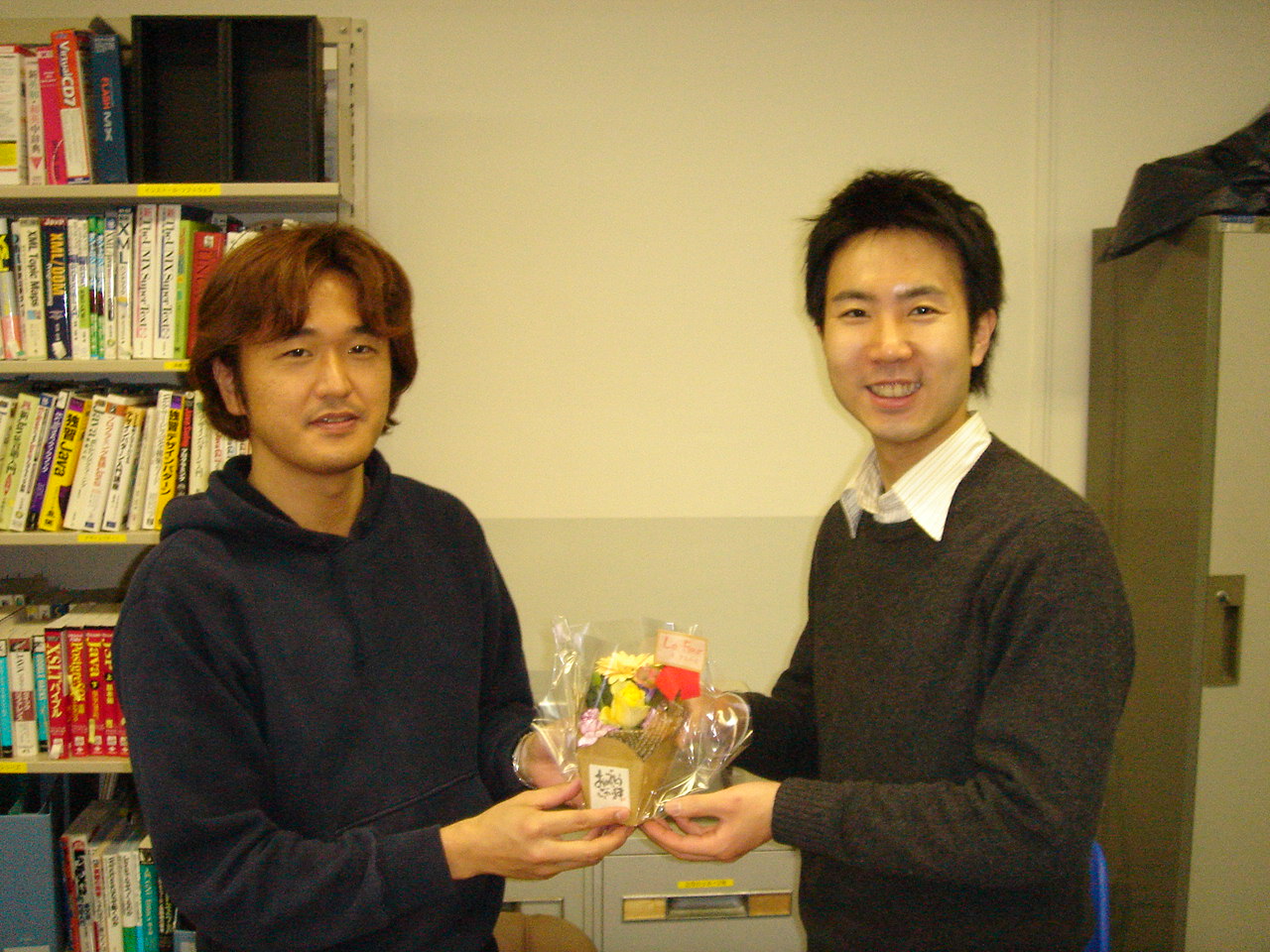 BEFORE 広さは元の研究室の約2倍! みんな床に敷かれた絨毯に感動!! AFTER1 入ったらすぐに大画面があり、けっこーまとまった感があります。 AFTER2 引っ越したばかりだというのにこの生活感! 瀬田研ならではのものの多さによるものです。 瀬田研大好きっ子のOB松本さん 引っ越し祝いのお花をいただきました。 ありがとうございました! 2号館への引越し