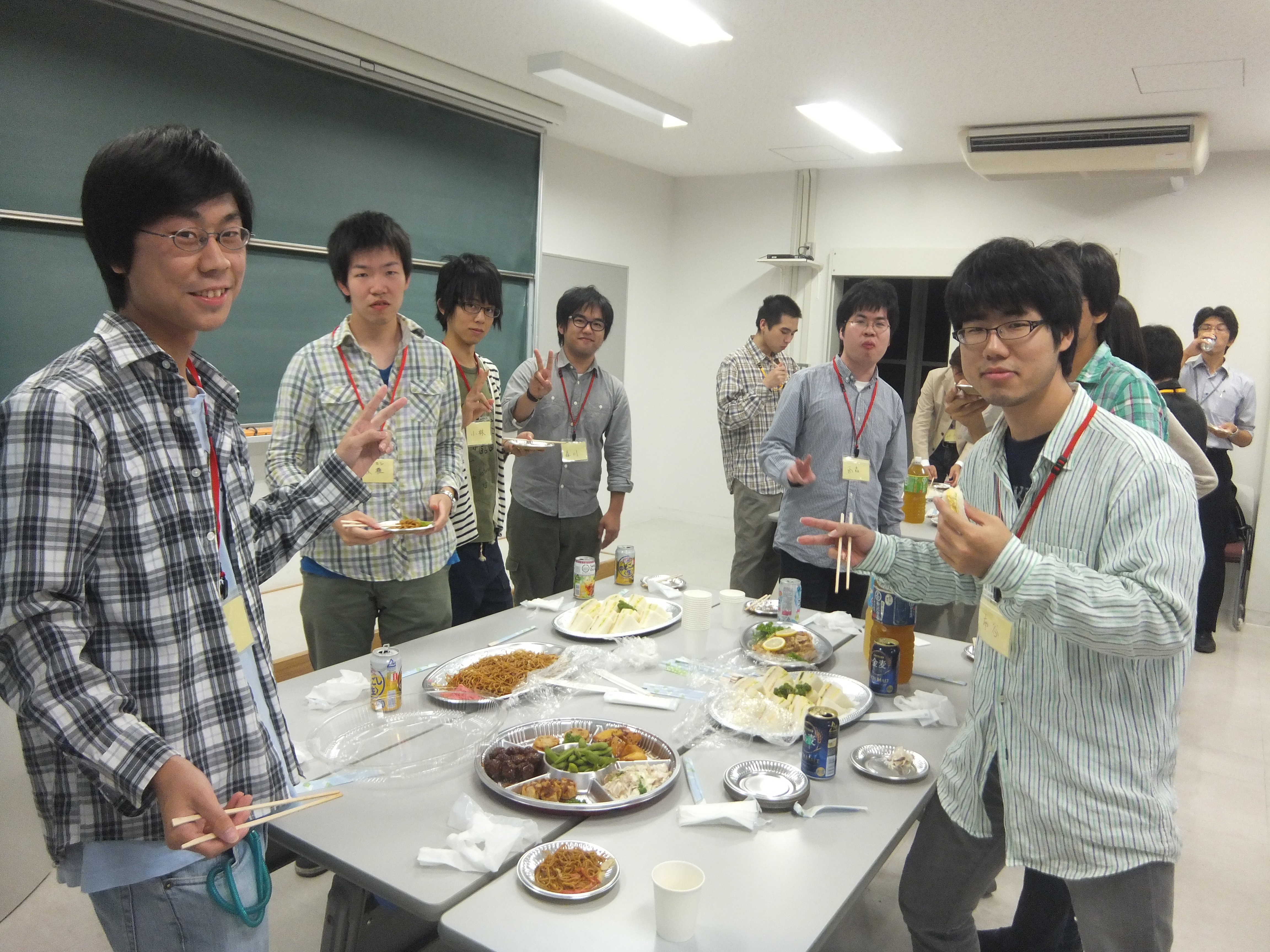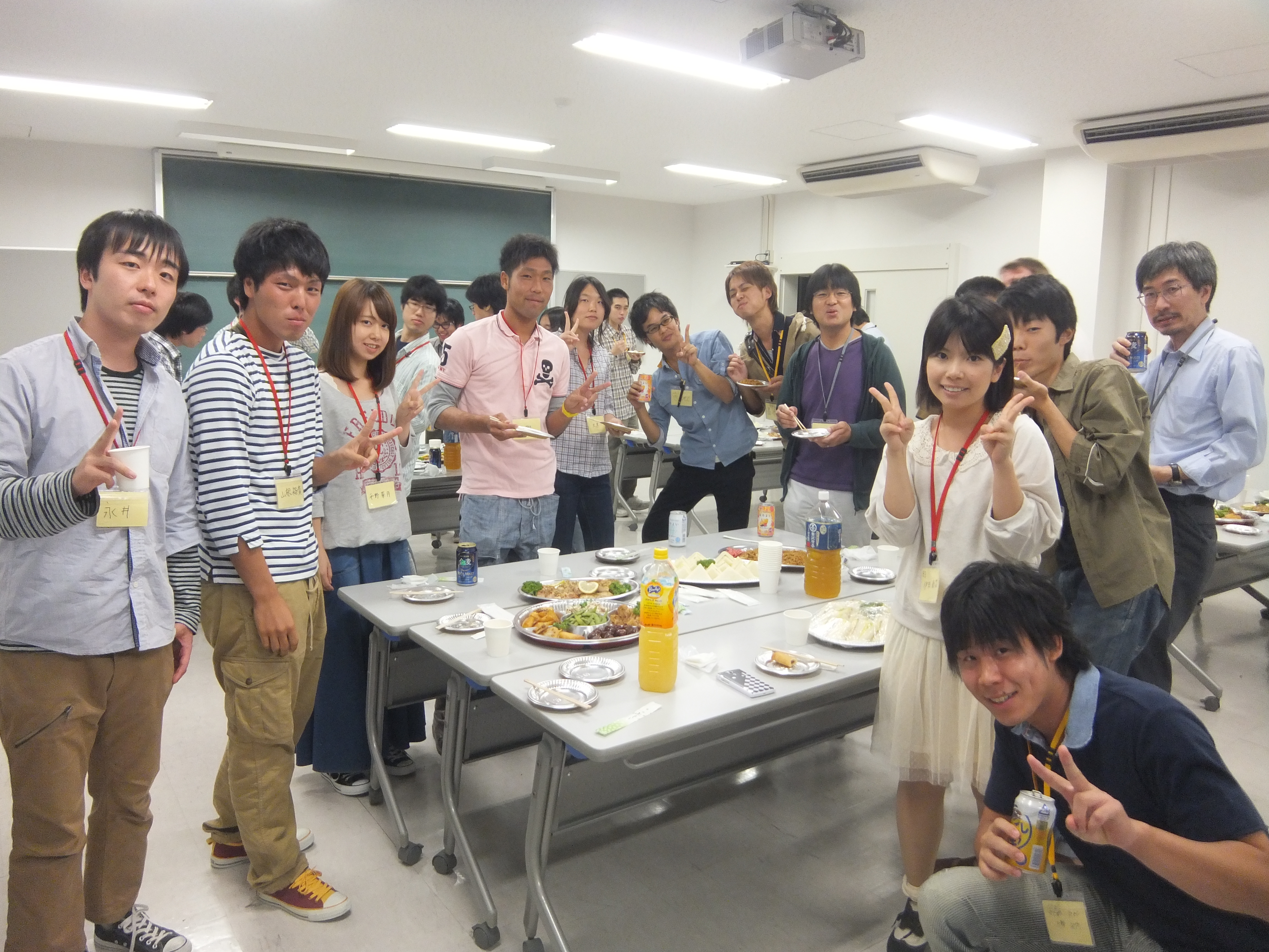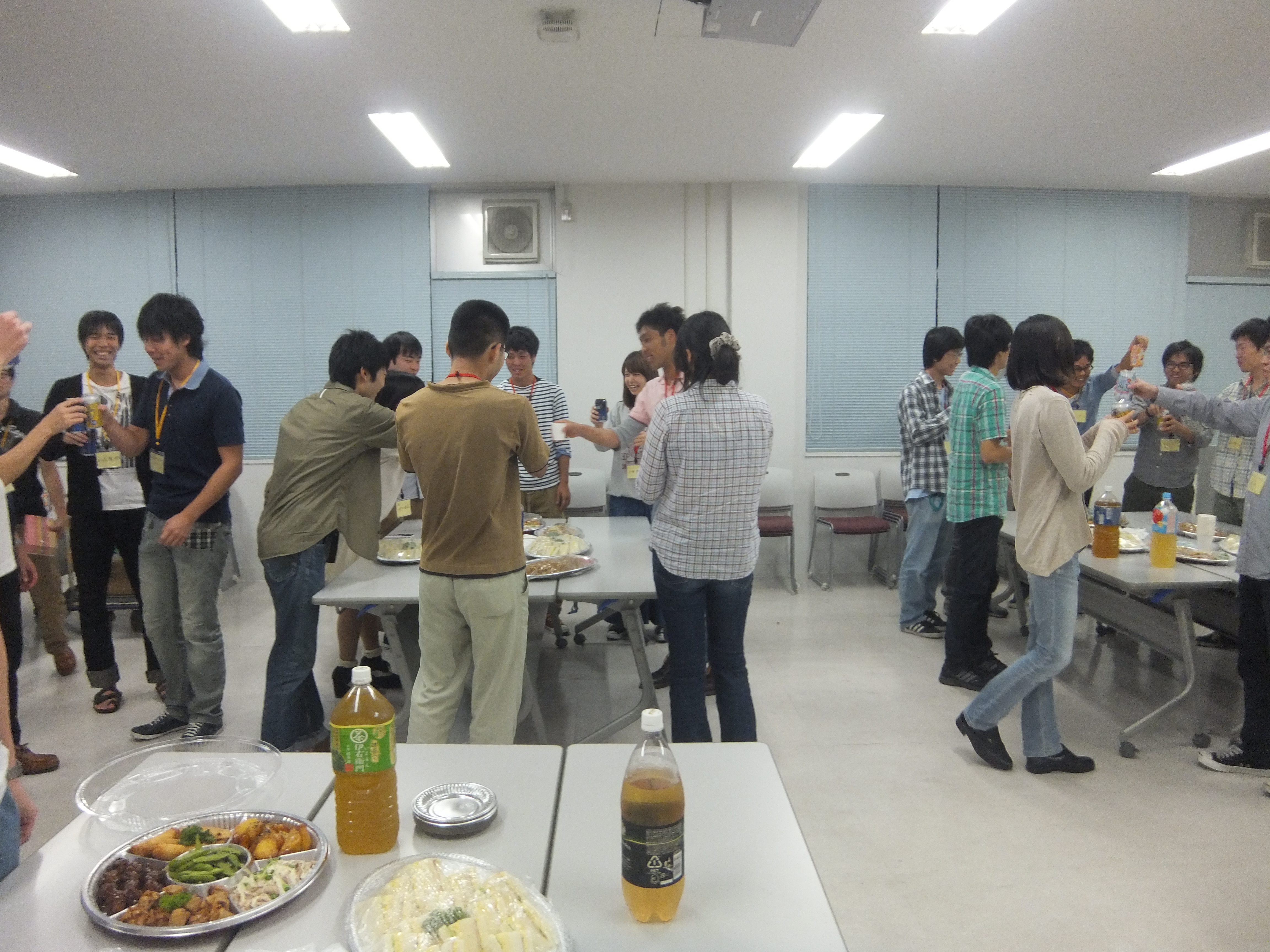 今日は卒研説明会とその後に親睦会!お手伝いをしました。 まだかな、まだかな~笑 参加者があつまったところでいざ乾杯~! まずは3回生たち。説明会おつかれさまでした! 聞きたかったことは聞けたでしょうか。 こちらのテーブルも3回生たち。たくさんの人が参加してくれました^^ 先生方も先輩たちも、たくさん集まってくれました! 説明会だけではわからなかったことが聞ける良いチャンスですね^^ 研究室選びには、研究内容だけでなく、先生や先輩とうまくやっていけるかどうかも重要かもしれません^^ 研究室が違っても、こうして集まって話す機会があるとすごく楽しいし、いいですね~ 久しぶりの田尻くん!! いつもいつもありがとうございます、杉森さん。実は今日も、期待しておりました。笑 仲良しですね!素敵な一枚です。 今回準備をしてくれた平野さん。ありがとう、おつかれさまでした^^ 次回はきっと、林研のBBQですね!11月9日、浜寺公園です^^ 親睦会