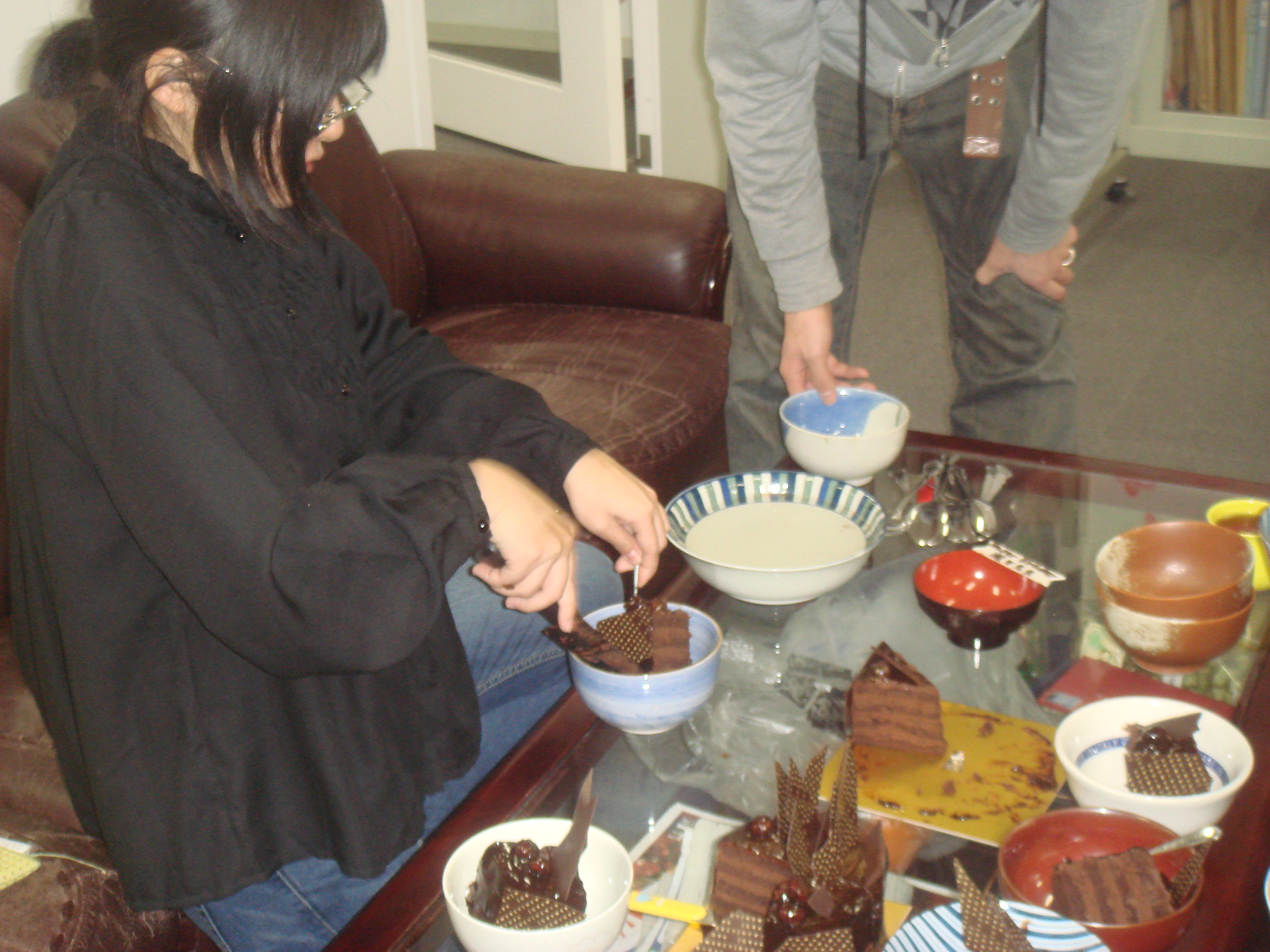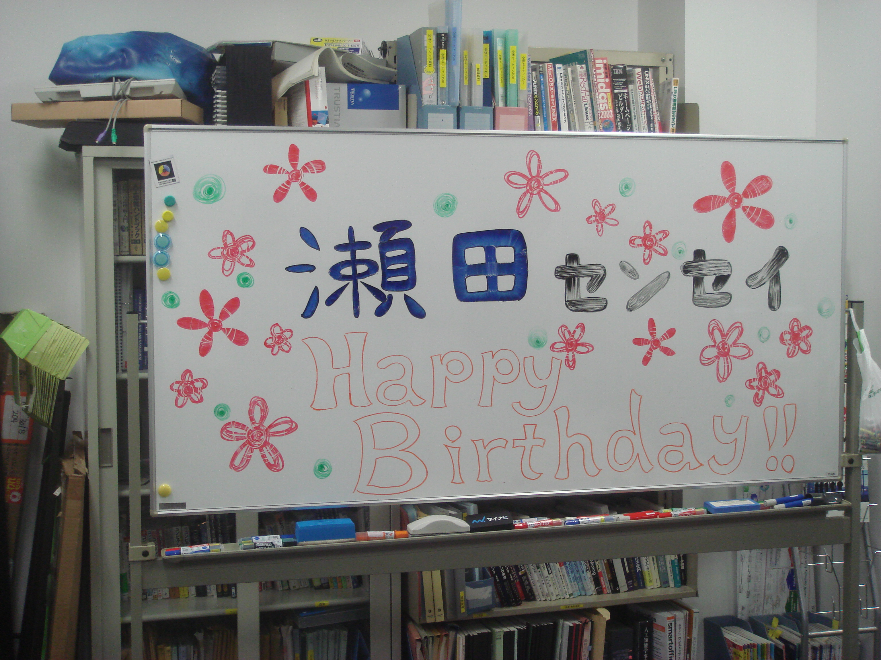 2月1日は瀬田先生の誕生日でした。 藤元さんが用意してくださったバースデーチョコレートケーキ。 めちゃくちゃおいしそう!! 3回生が先生のバースデーのために書いたホワイトボード。 先生に喜んでもらいたくて気合を入れました☆ 藤元さんがケーキを切り分けてくださいました。 青木さんが待ちきれない様子(笑) おいしそうにケーキを食べる瀬田先生。 先生、お誕生日おめでとうございます! これからも、カッコいい素敵な先生でいてください☆ 瀬田先生Birthday