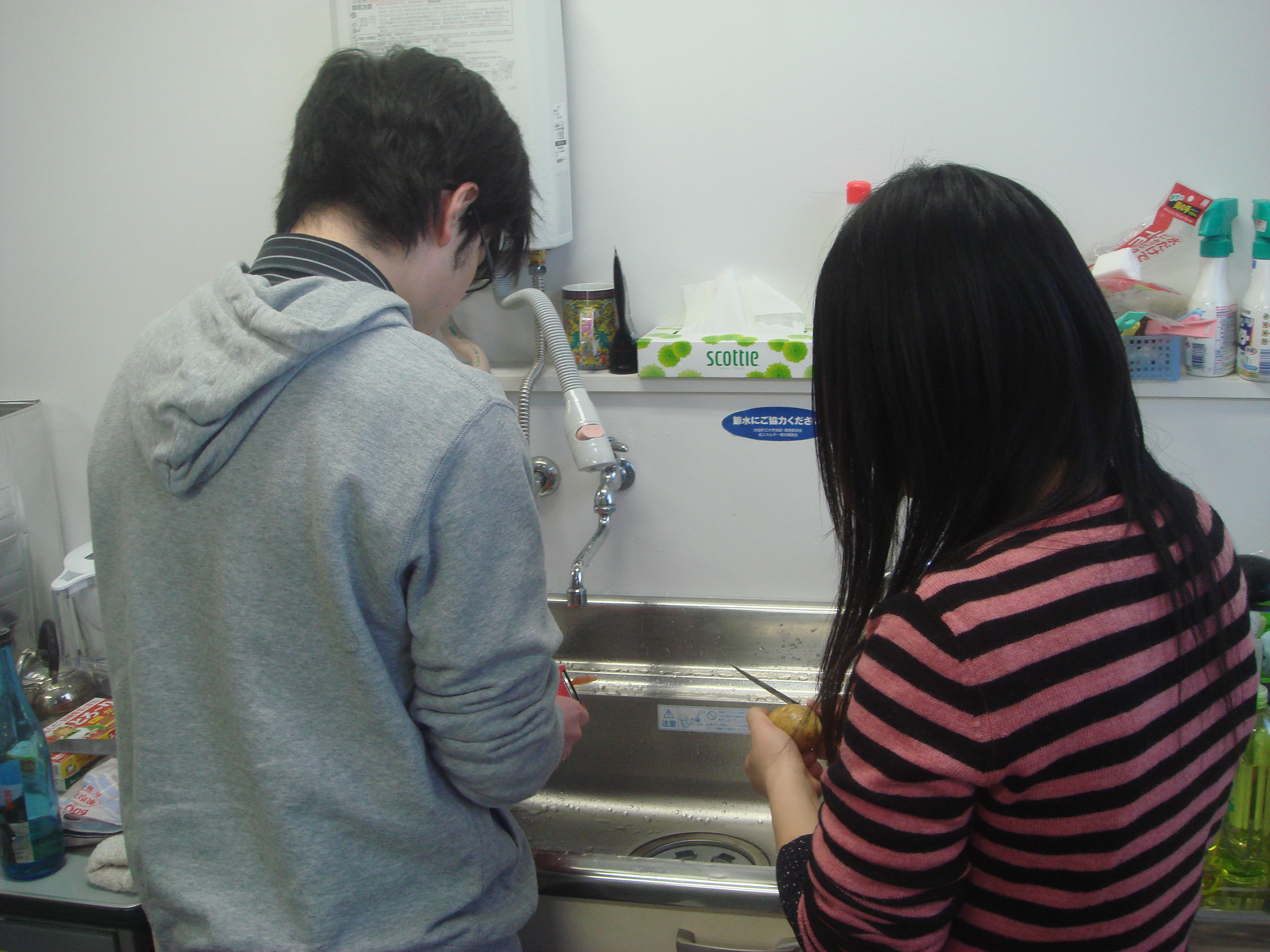 二人とも野菜の皮むきに必死です(笑)