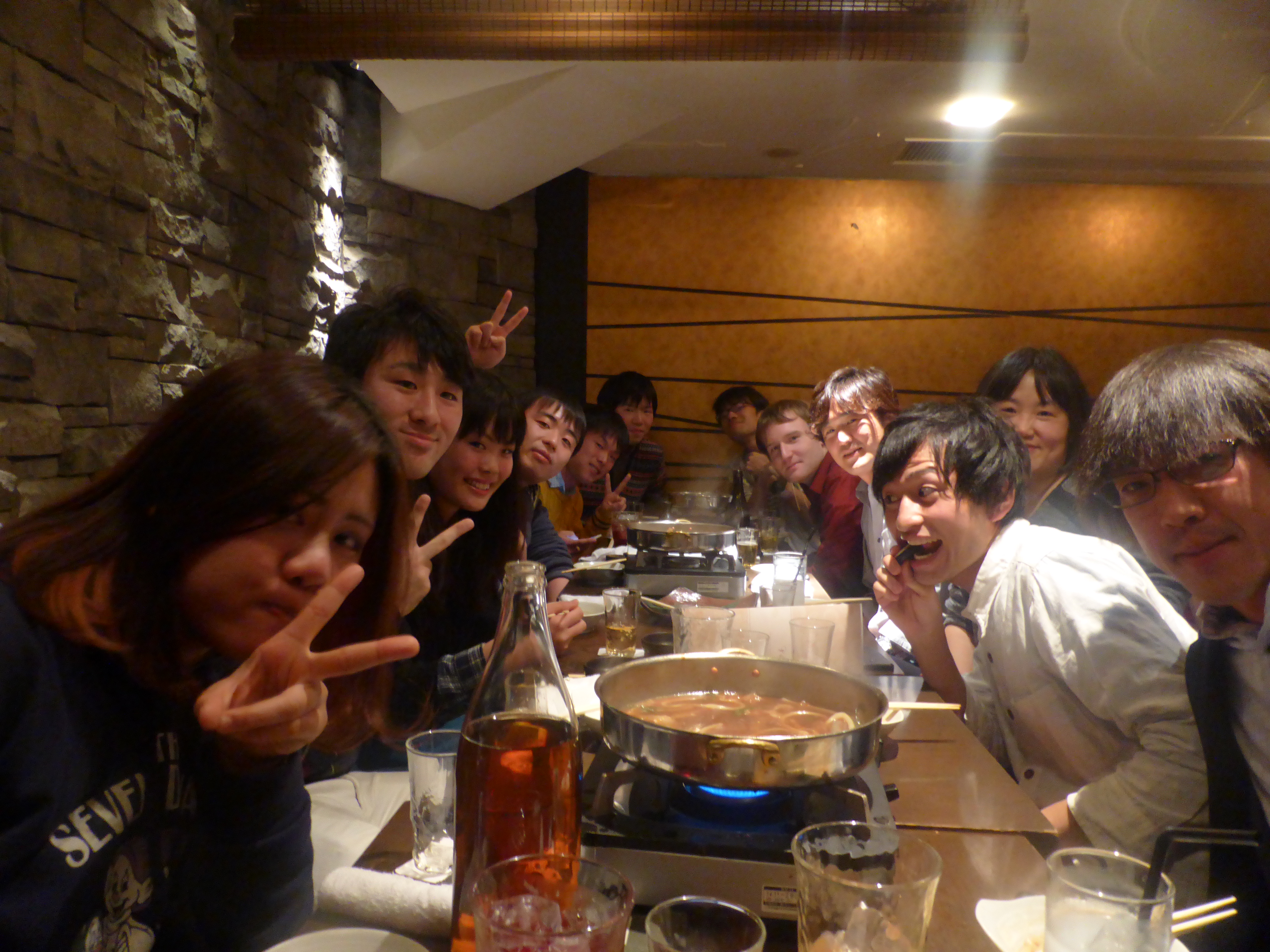 若手の会.ICCEボランティアで両大学の学生同士が親しくなり,このような機会を設けることができました.