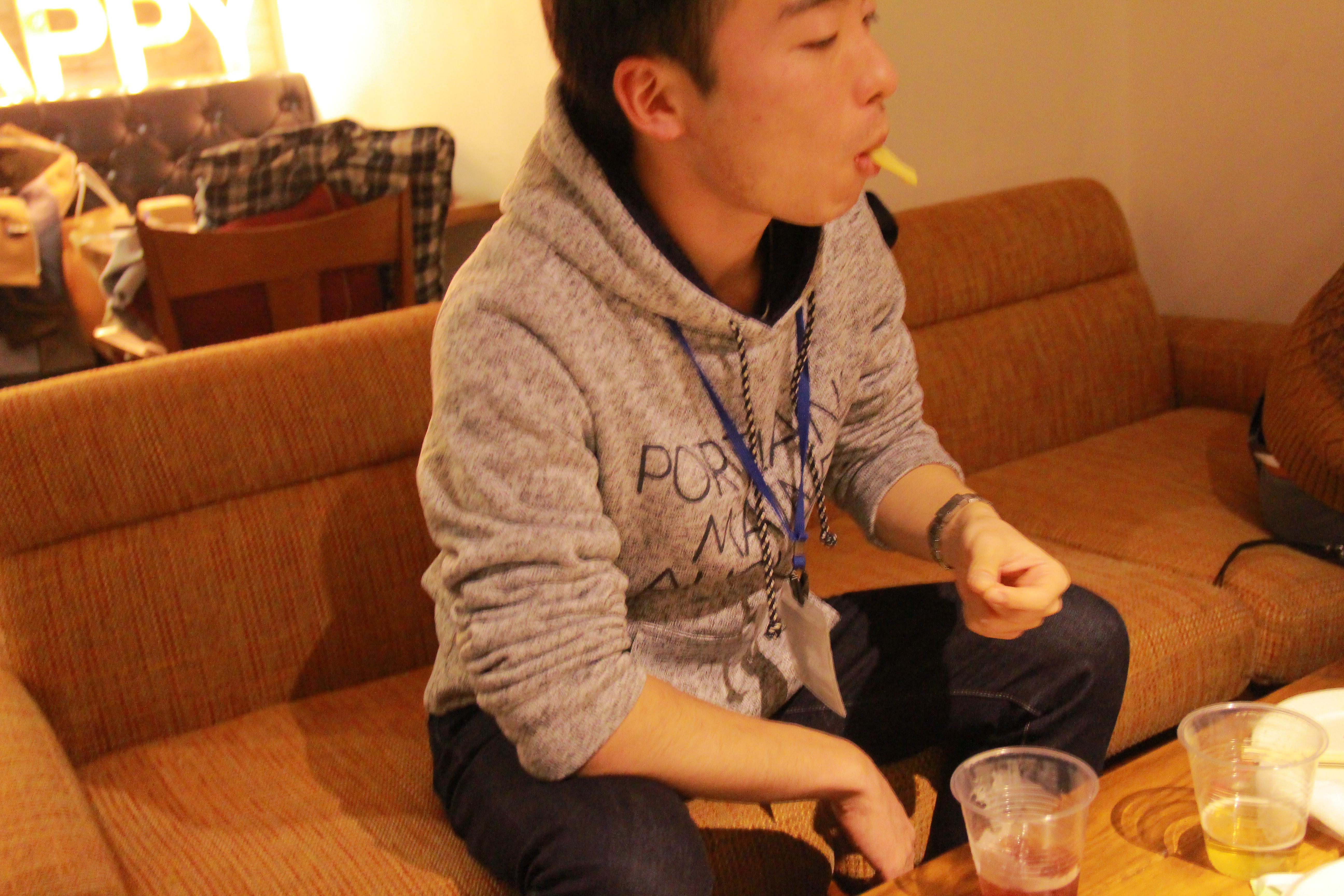 永井さん、おいしそうにポテトを食べていらっしゃいますね〜