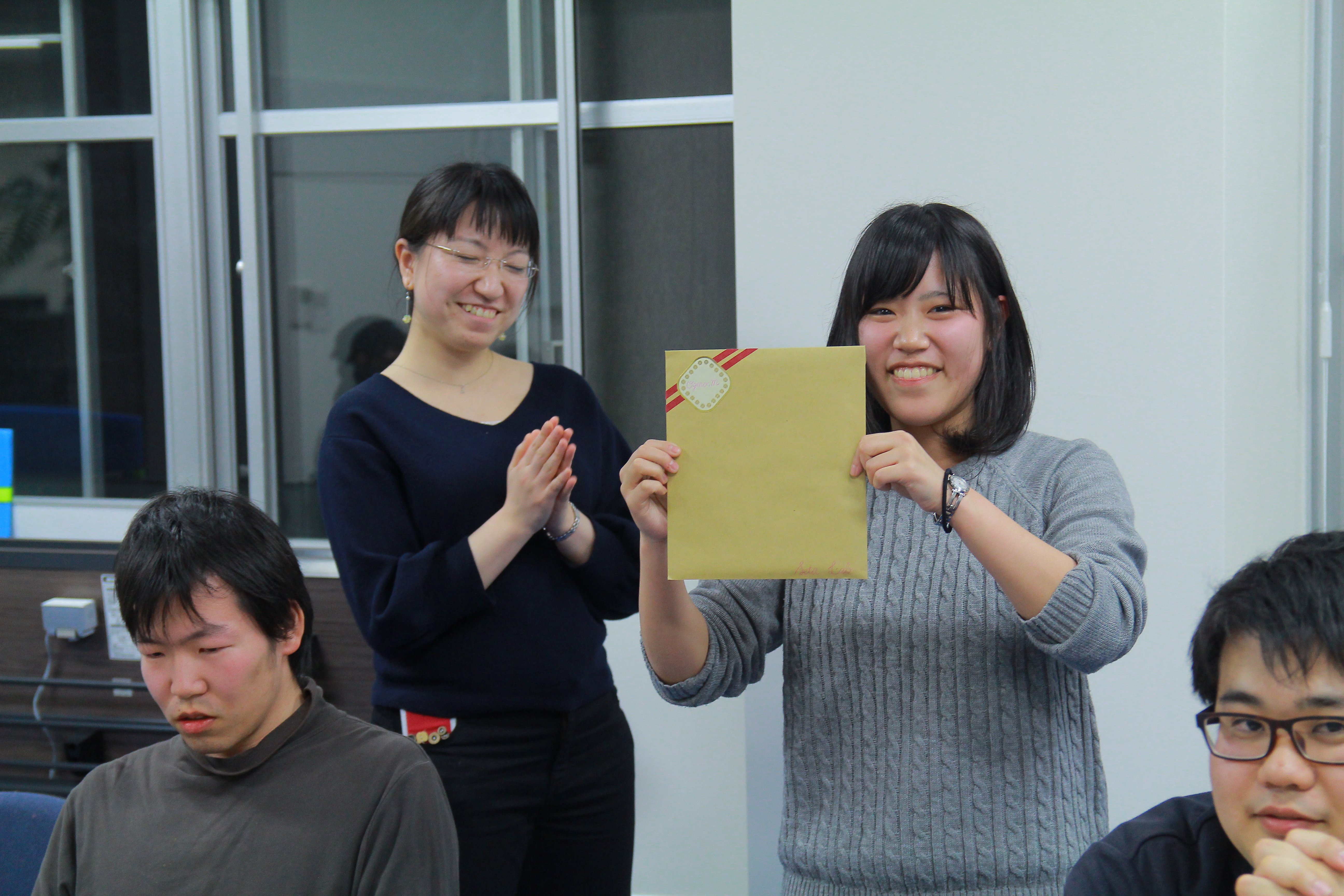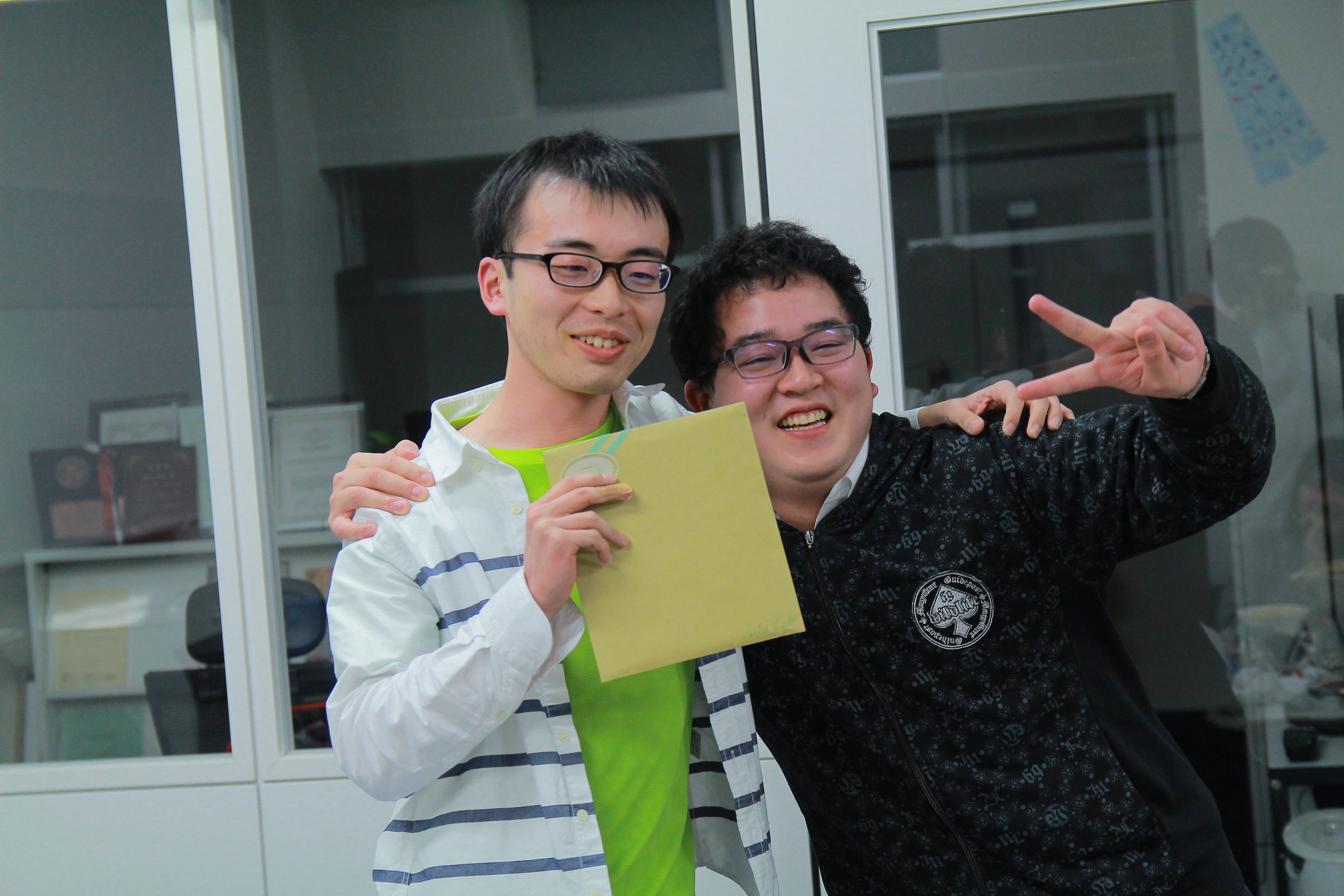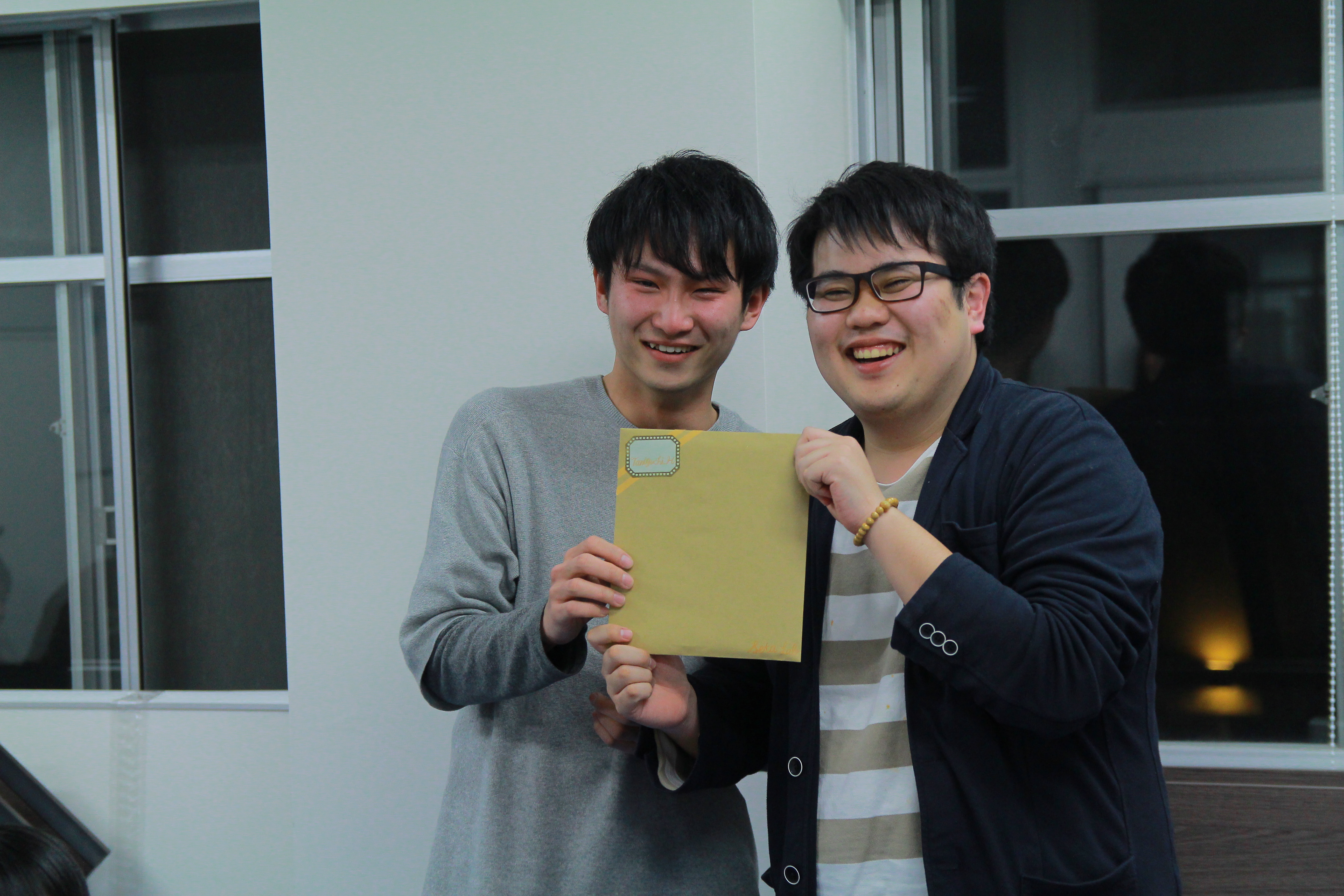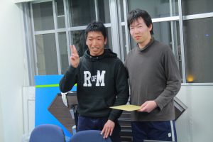 というわけできちんと後で,B3大野とB4橋本の2人で罰ゲーム(先生方の前で先生方のモノマネ)を行いましたよ!笑
