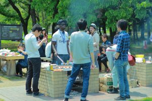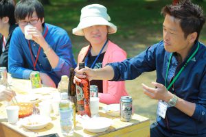 天気にも恵まれて,学生やたくさんの先生方と交流することができ,とても良いBBQとなりました.